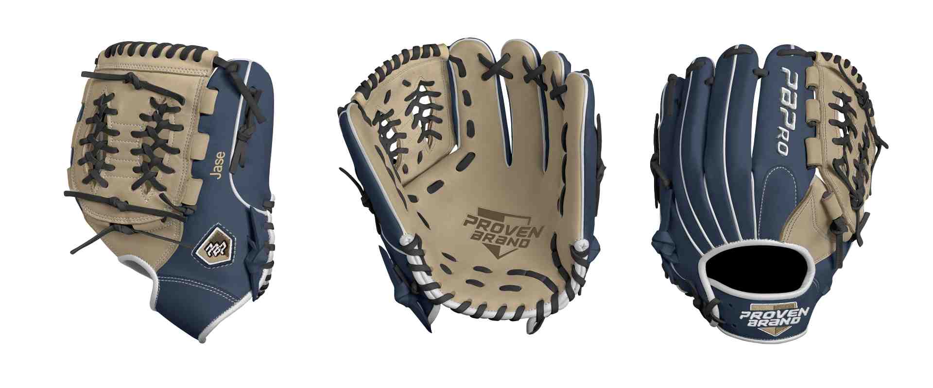 Category: PBPro Custom Product: Baseball Series: Phantom Series | USD 169.00 Glove Type: Fielders Size: 11.75" Finger Pad: With Finger Pad Web: Modified Basket Web Palm: Palm (Color: Cream) Back Shell Main: Back Shell Main (Color: Navy) Back Shell Accent: Back Shell Accent (Color: Navy) Web: Web (Color: Cream) Finger Pad: Finger Pad (Color: Navy) Welting: Welting (Color: White) Binding: Binding (Color: White) Lace: Lace (Color: Black) Logo and Label-flat: Logo and Label-flat (Color: Cream) Stitch: Stitch (Color: White) Embroidery: Embroidery (Color: White) Hand Throw: Right Hand Thrower Lace Length: Normal Flex (will not show in customizer): Standard Flex: ( Ideal for Youth Player. Glove still needs to break in) Wrist Opening (will not show in customizer): Standard Wrist Name: Jase (Font Style: Pontano Sans, Font Color: Cream, Patch Color: N/A) Flag (Ring Finger): United States Remarks: N/A