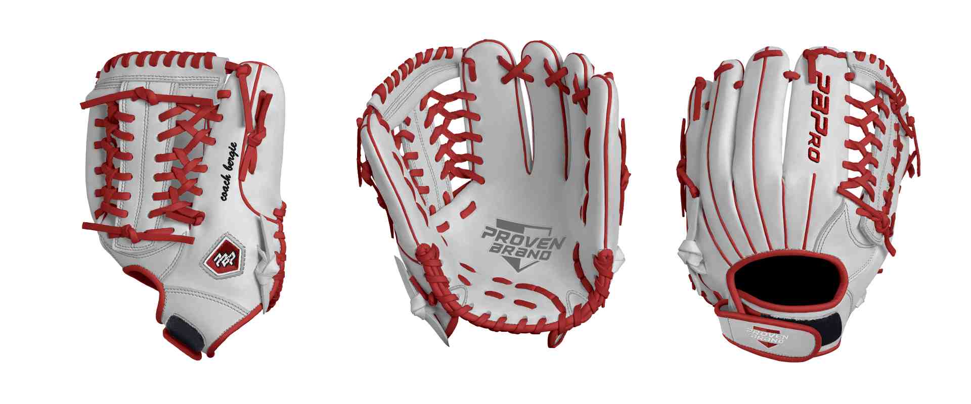 Category: PBPro Custom Product: Fastpitch Series: Phantom Series | USD 169.00 Glove Type: Fielders Size: 12.25" Web: Modified Trap Web Palm: Palm (Color: White) Back Shell Main: Plain Leather (Color: White) Back Shell Accent: Plain Leather (Color: White) Web: Web (Color: White) Welting: Welting (Color: Red) Binding: Binding (Color: Red) Lace: Lace (Color: Red) Logo and Label-flat: Logo and Label-flat (Color: Red) Stitch: Stitch (Color: White) Embroidery: Embroidery (Color: Red) Hand Throw: Right Hand Thrower Lace Length: Normal Name: coach bergie (Font Style: Brush Script MT, Font Color: Black, Patch Color: N/A) Flag (Ring Finger): N/A Remarks: I have emailed a logo to be put on the glove to Proven Brand.