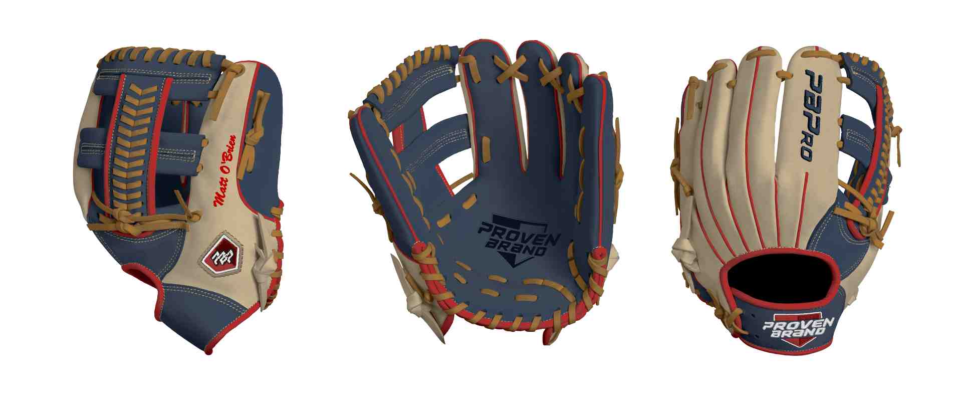Category: PBPro Custom Product: Baseball Series: Phantom Series | USD 189.00 Glove Type: Fielders Size: 11.75" Finger Pad: Without Finger Pad Web: X-Laced Single Post Web Palm: Palm (Color: Navy) Back Shell Main: Back Shell Main (Color: Cream) Back Shell Accent: Back Shell Accent (Color: Navy) Web: Web (Color: Navy) Welting: Welting (Color: Red) Binding: Binding (Color: Red) Lace: Lace (Color: Tan) Logo and Label-flat: Logo and Label-flat (Color: Red) Stitch: Stitch (Color: Cream) Embroidery: Embroidery (Color: Navy) Hand Throw: Right Hand Thrower Lace Length: Normal Flex (will not show in customizer): Pro Flex: (Ideal for Pro Player who wants to have more control in forming the glove) Wrist Opening (will not show in customizer): Standard Wrist Name: Matt O'Brien (Font Style: Brush Script MT, Font Color: Red, Patch Color: N/A) Flag (Ring Finger): United States | USD 5.00 Remarks: N/A