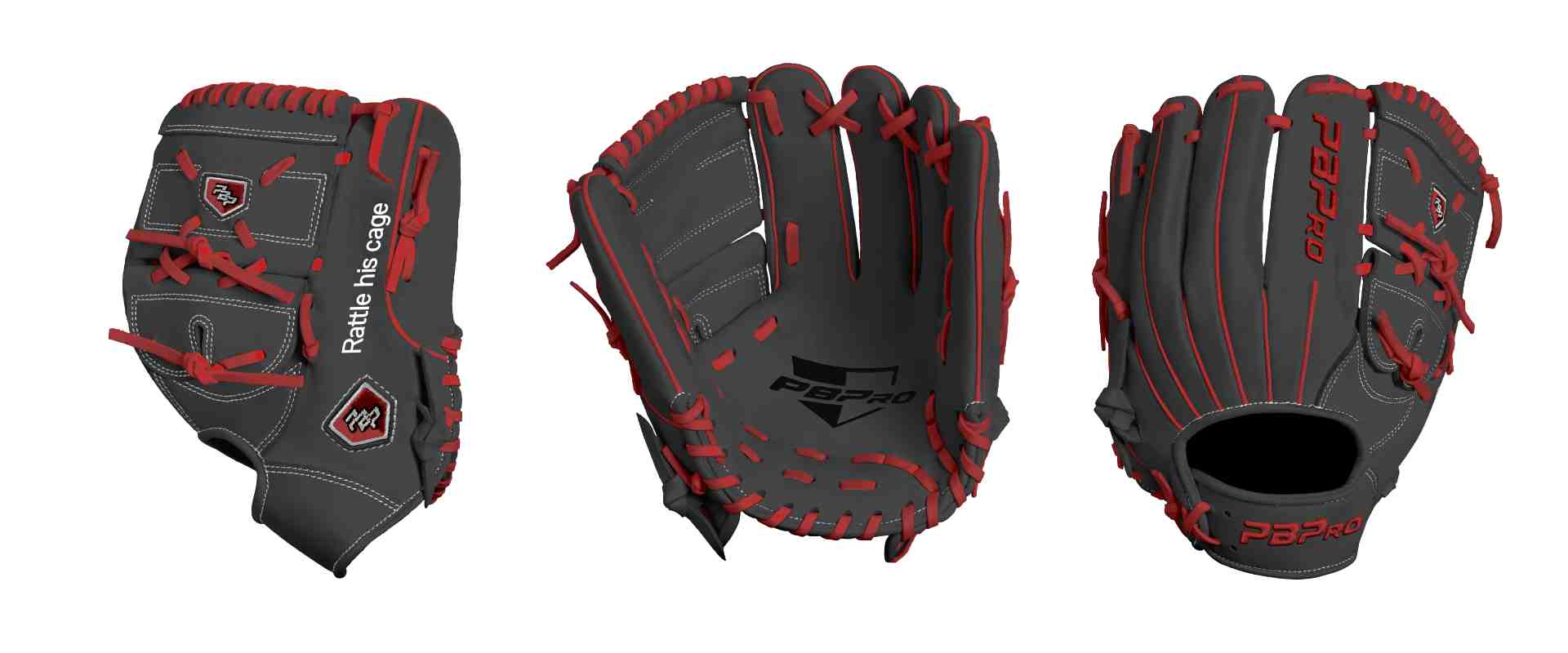 Category: PBPro Custom Product: Baseball Series: Phantom Series | USD 169.00 Glove Type: Fielders Size: 11.75" Finger Pad: Without Finger Pad Web: Two Piece Web Palm: Palm (Color: Black) Back Shell Main: Back Shell Main (Color: Black) Back Shell Accent: Back Shell Accent (Color: Black) Web: Web (Color: Black) Welting: Welting (Color: Red) Binding: Binding (Color: Black) Lace: Lace (Color: Red) Logo and Label: Logo and Label (Color: Red) Stitch: Stitch (Color: White) Embroidery: Embroidery (Color: Red) Hand Throw: Right Hand Thrower Lace Length: Long (will not show in customizer) Flex (will not show in customizer): Pro Flex: (Ideal for Pro Player who wants to have more control in forming the glove) Wrist Opening (will not show in customizer): Standard Wrist Name: Rattle his cage (Font Style: Pontano Sans, Font Color: White, Patch Color: N/A) Flag (Ring Finger): N/A Remarks: N/A