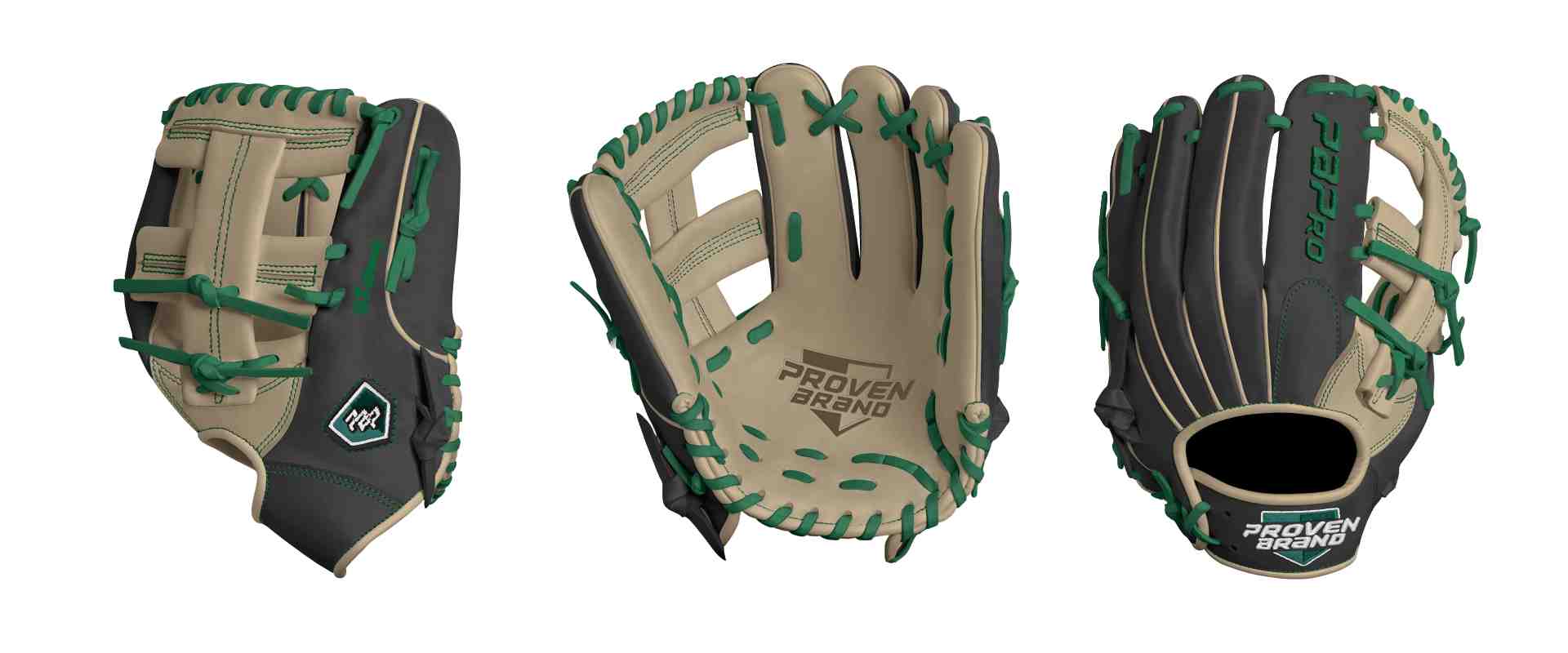 Category: PBPro Custom Product: Baseball Series: Pro Grade Series | USD 219.00 Glove Type: Fielders Size: 11.5 Finger Pad: With Finger Pad Web: New Cross Web Palm: Palm (Color: Cream) Back Shell Main: Back Shell Main (Color: Black) Back Shell Accent: Back Shell Accent (Color: Black) Web: Web (Color: Cream) Finger Pad: Finger Pad (Color: Black) Welting: Welting (Color: Cream) Binding: Binding (Color: Cream) Lace: Lace (Color: Green) Logo and Label-puffed: Logo and Label-puffed (Color: Northwest Green) Stitch: Stitch (Color: Green) Embroidery: Embroidery (Color: Green) Hand Throw: Right Hand Thrower Lace Length: Normal Flex (will not show in customizer): Standard Flex: ( Ideal for Youth Player. Glove still needs to break in) Wrist Opening (will not show in customizer): Standard Wrist Name: #8strong (Font Style: Brush Script MT, Font Color: Green, Patch Color: N/A) Flag (Ring Finger): N/A Remarks: Put the Georgia yard goats logo on the thumb