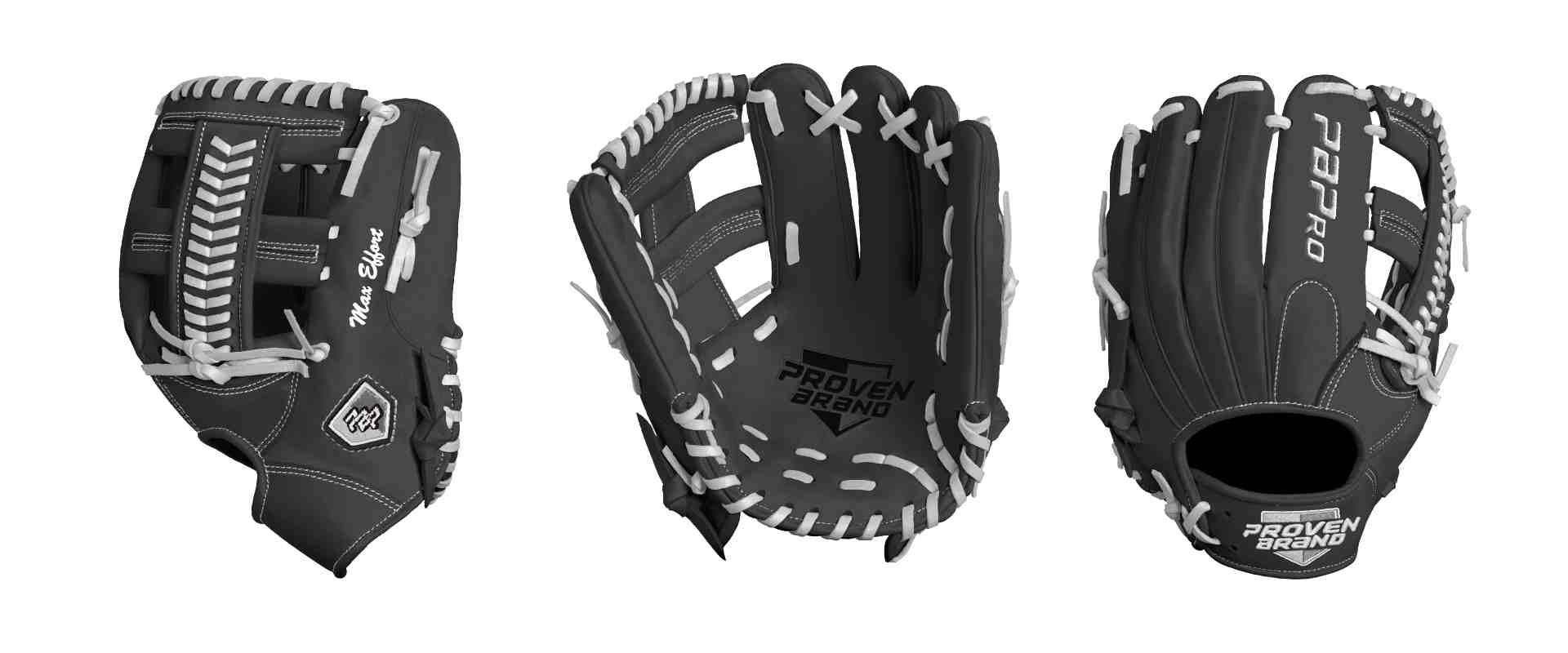 Category: PBPro Custom Product: Baseball Series: Pro Grade Series | USD 219.00 Glove Type: Fielders Size: 11.25" Finger Pad: With Finger Pad Web: X-Laced Single Post Web Palm: Palm (Color: Black) Back Shell Main: Back Shell Main (Color: Black) Back Shell Accent: Back Shell Accent (Color: Black) Web: Web (Color: Black) Finger Pad: Finger Pad (Color: Black) Welting: Welting (Color: Black) Binding: Binding (Color: Black) Lace: Lace (Color: White) Logo and Label-puffed: Logo and Label-puffed (Color: White) Stitch: Stitch (Color: White) Embroidery: Embroidery (Color: White) Hand Throw: Right Hand Thrower Lace Length: Normal Flex (will not show in customizer): Standard Flex: ( Ideal for Youth Player. Glove still needs to break in) Wrist Opening (will not show in customizer): Standard Wrist Name: Max Effort (Font Style: Brush Script MT, Font Color: White, Patch Color: N/A) Flag (Ring Finger): N/A Remarks: N/A