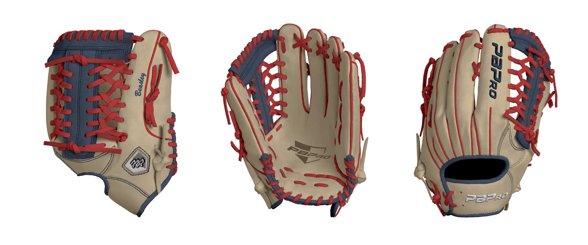 Category: PBPro Custom Product: Baseball Series: Pro Grade Series | USD 199.00 Glove Type: Fielders Size: 12.75" Finger Pad: Without Finger Pad Web: Modified Trap Web Palm: Palm (Color: Cream) Back Shell Main: Back Shell Main (Color: Cream) Back Shell Accent: Back Shell Accent (Color: Cream) Web: Web (Color: Navy) Welting: Welting (Color: Red) Binding: Binding (Color: Navy) Lace: Lace (Color: Red) Logo and Label: Logo and Label (Color: Red) Stitch: Stitch (Color: Navy) Embroidery: Embroidery (Color: Navy) Hand Throw: Right Hand Thrower Lace Length: Normal Name: Beasley (Font Style: Brush Script MT, Font Color: Navy, Patch Color: N/A) Flag (Ring Finger): United States Remarks: N/A