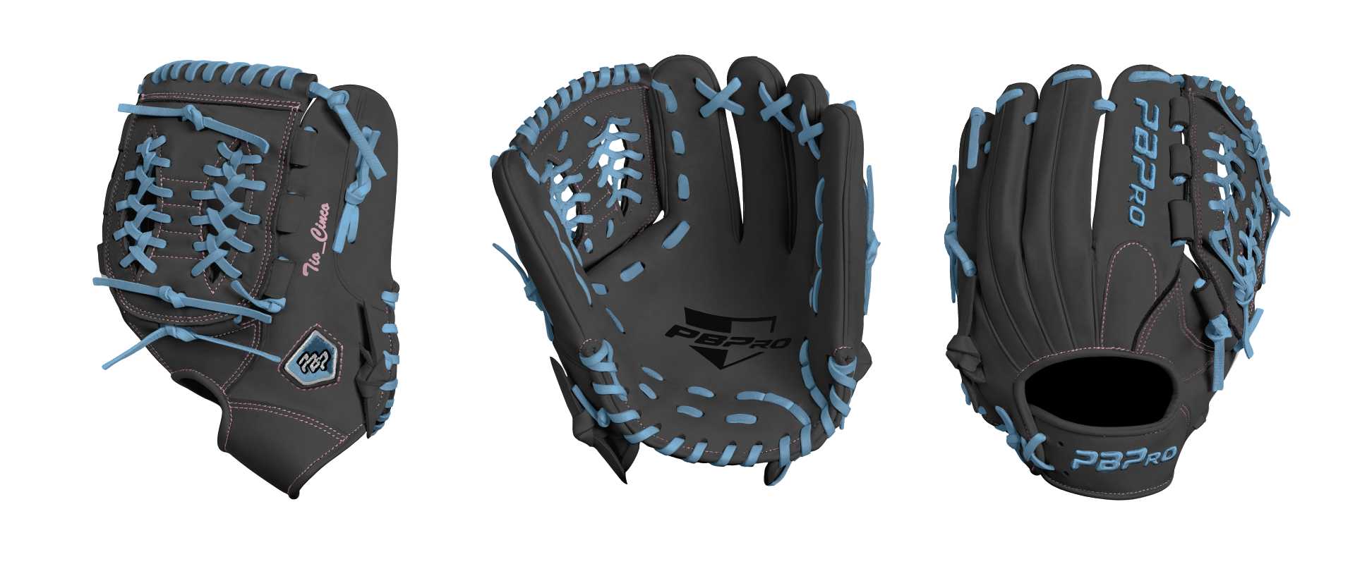 Category: PBPro Custom Product: Baseball Series: Pro Grade Series | USD 199.00 Glove Type: Fielders Size: 11.75" Finger Pad: With Finger Pad Web: Modified Basket Web Palm: Palm (Color: Black) Back Shell Main: Back Shell Main (Color: Black) Back Shell Accent: Back Shell Accent (Color: Black) Web: Web (Color: Black) Finger Pad: Finger Pad (Color: Black) Welting: Welting (Color: Black) Binding: Binding (Color: Black) Lace: Lace (Color: Columbia Blue) Logo and Label: Logo and Label (Color: Columbia Blue) Stitch: Stitch (Color: C.Pink) Embroidery: Embroidery (Color: Columbia Blue) Hand Throw: Right Hand Thrower Lace Length: Normal Name: Tio_Cinco (Font Style: Brush Script MT, Font Color: C.Pink, Patch Color: N/A) Flag (Ring Finger): N/A Remarks: can you please put a cross between the name and the logo you choose the color either pink or the same color blue used on the laces. i don't care what color is used. its more special if you guys chose the color.
