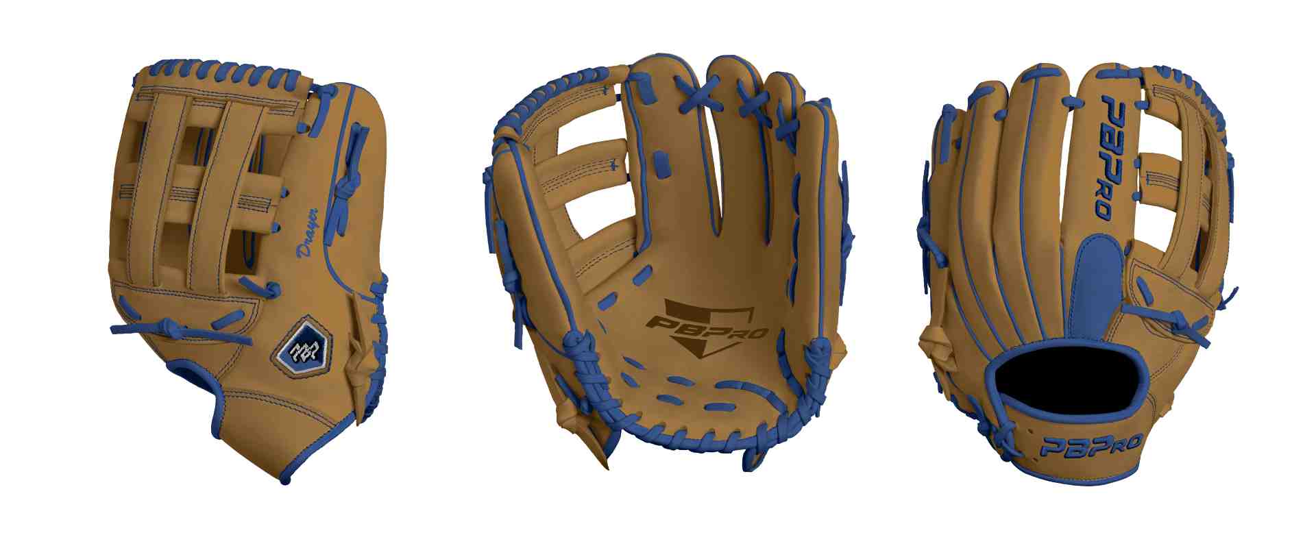 Category: PBPro Custom Product: Baseball Series: Pro Grade Series | USD 219.00 Glove Type: Fielders Size: 12" Finger Pad: With Finger Pad Web: Pro H Web Palm: Palm (Color: Tan) Back Shell Main: Back Shell Main (Color: Tan) Back Shell Accent: Back Shell Accent (Color: Tan) Web: Web (Color: Tan) Finger Pad: Finger Pad (Color: Royal) Welting: Welting (Color: Royal) Binding: Binding (Color: Royal) Lace: Lace (Color: Royal) Logo and Label: Logo and Label (Color: Royal) Stitch: Stitch (Color: Royal) Embroidery: Embroidery (Color: Royal) Hand Throw: Right Hand Thrower Lace Length: Normal Flex (will not show in customizer): Standard Flex: ( Ideal for Youth Player. Glove still needs to break in) Wrist Opening (will not show in customizer): Standard Wrist Name: Drayer (Font Style: Brush Script MT, Font Color: Royal, Patch Color: N/A) Flag (Ring Finger): United States Remarks: N/A