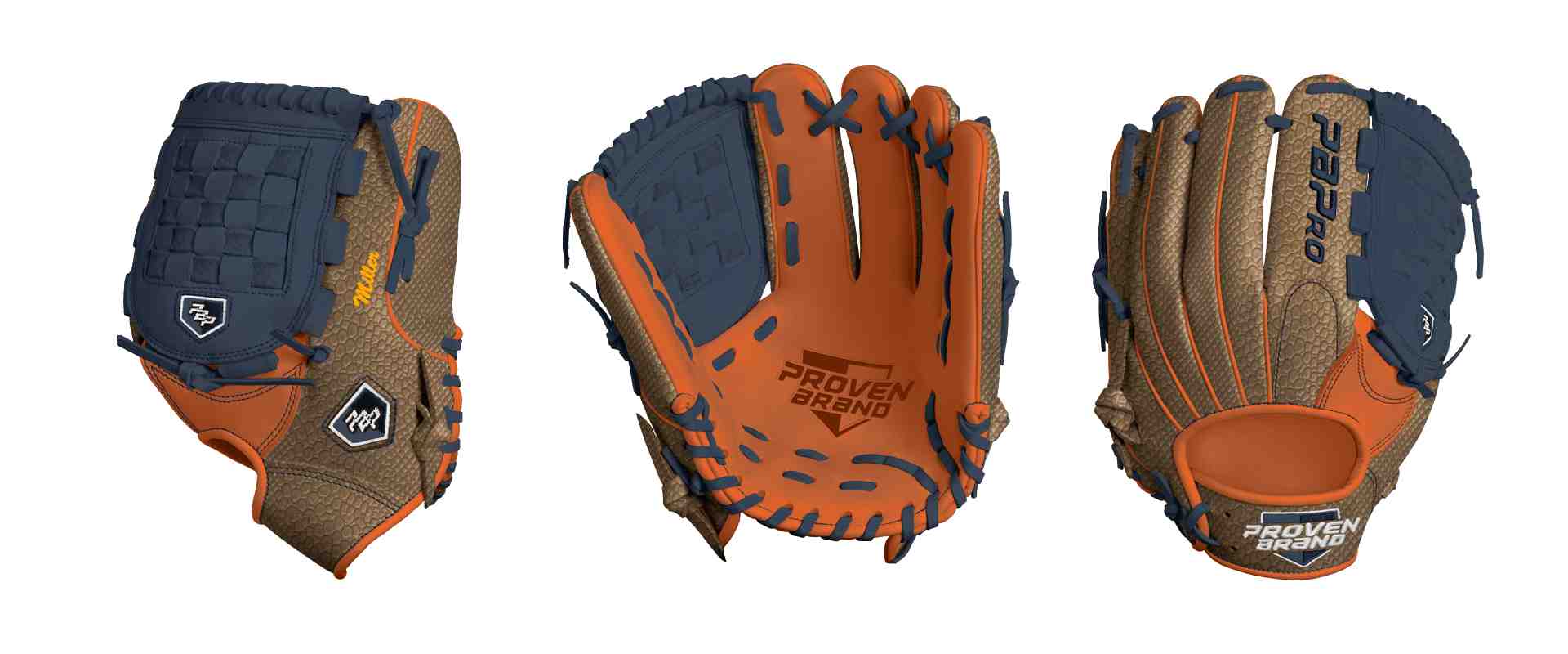 Category: PBPro Custom Product: Baseball Series: Pro Order Series | USD 349.00 Glove Type: Fielders Size: 11.5" Finger Pad: With Finger Pad Web: Hinged Basket Web Palm: Palm (Color: Orange) Back Shell Main: Snakeskin Leather (Color: Carmel) Back Shell Accent: Snakeskin Leather (Color: Carmel) Web: Web (Color: Navy) Finger Pad: Snakeskin Leather (Color: Carmel) Welting: Welting (Color: Orange) Binding: Binding (Color: Orange) Lace: Lace (Color: Navy) Logo and Label-puffed: Logo and Label-puffed (Color: Navy) Stitch: Stitch (Color: Navy) Embroidery: Embroidery (Color: Navy) Hand Throw: Right Hand Thrower Lace Length: Normal Flex (will not show in customizer): Pro Flex: (Ideal for Pro Player who wants to have more control in forming the glove) Name: Miller (Font Style: Brush Script MT, Font Color: Golden Yellow, Patch Color: N/A) Flag (Ring Finger): Florida | USD 5.00 Remarks: N/A