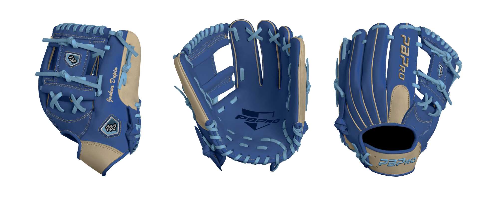 Category: PBPro Custom Product: Baseball Series: Pro Order Series | USD 299.00 Glove Type: Fielders Size: 11.75" Finger Pad: With Finger Pad Web: Pro I Web Palm: Palm (Color: Royal) Back Shell Main: Plain Leather (Color: Royal) Back Shell Accent: Plain Leather (Color: Cream) Web: Web (Color: Royal) Finger Pad: Plain Leather (Color: Cream) Welting: Welting (Color: Cream) Binding: Binding (Color: Royal) Lace: Lace (Color: Columbia Blue) Logo and Label: Logo and Label (Color: Columbia Blue) Stitch: Stitch (Color: Cream) Embroidery: Embroidery (Color: Cream) Hand Throw: Right Hand Thrower Lace Length: Normal Name: Joshua Dupin (Font Style: Brush Script MT, Font Color: Cream, Patch Color: N/A) Flag (Ring Finger): N/A Remarks: please make wrist strap to closest to PB holes. small hands kid.