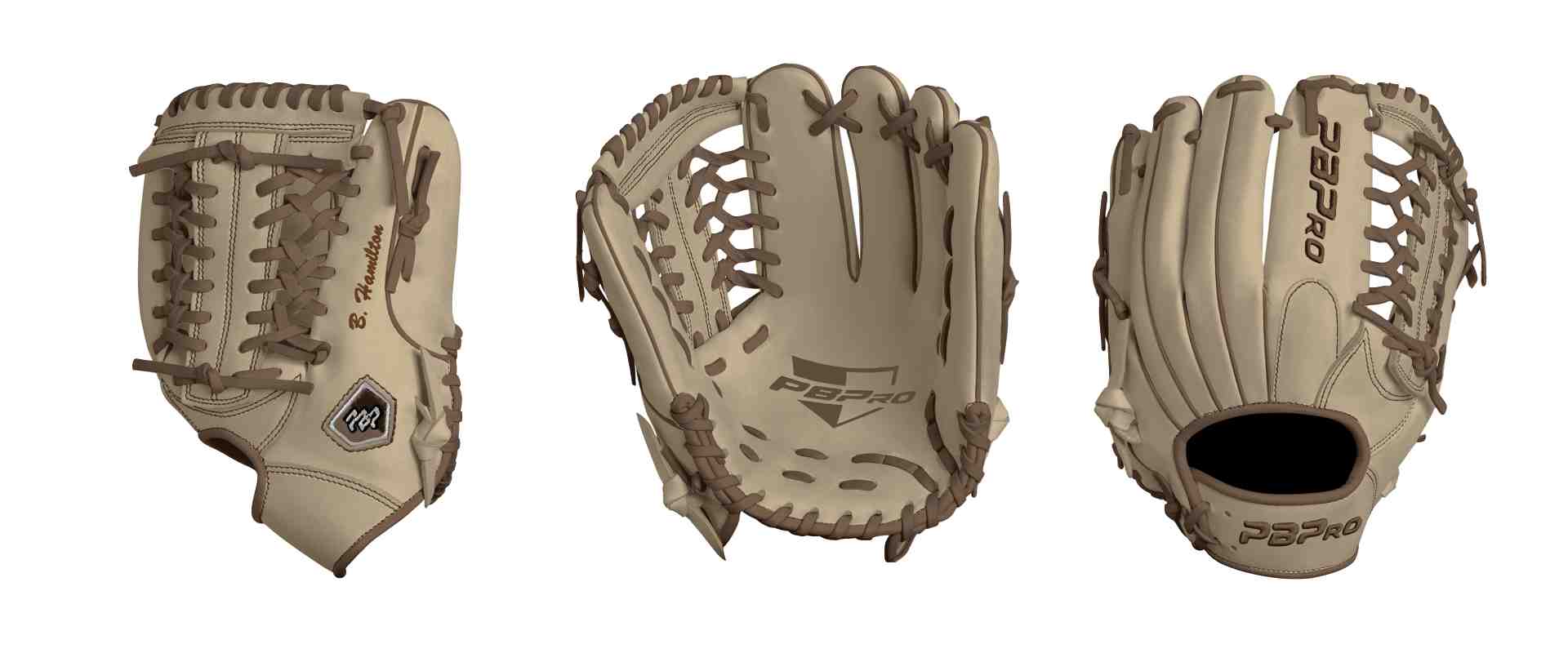 Category: PBPro Custom Product: Baseball Series: Travel Pro Series | USD 159.00 Glove Type: Fielders Size: 12" Finger Pad: With Finger Pad Web: Modified Trap Web Palm: Palm (Color: Cream) Back Shell Main: Back Shell Main (Color: Cream) Back Shell Accent: Back Shell Accent (Color: Cream) Web: Web (Color: Cream) Finger Pad: Finger Pad (Color: Cream) Welting: Welting (Color: Dark Brown) Binding: Binding (Color: Dark Brown) Lace: Lace (Color: Dark Brown) Logo and Label: Logo and Label (Color: Dark Brown) Stitch: Stitch (Color: Dark Brown) Embroidery: Embroidery (Color: Dark Brown) Hand Throw: Right Hand Thrower Lace Length: Normal Flex (will not show in customizer): Pro Flex: (Ideal for Pro Player who wants to have more control in forming the glove) Wrist Opening (will not show in customizer): Standard Wrist Name: B. Hamilton (Font Style: Brush Script MT, Font Color: Dark Brown, Patch Color: N/A) Flag (Ring Finger): Texas Remarks: N/A