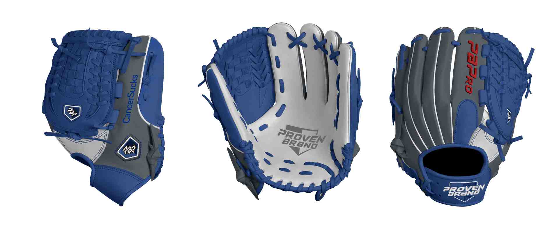 Category: PBPro Custom Product: Baseball Series: Travel Pro Series | USD 159.00 Glove Type: Fielders Size: 11.5" Finger Pad: With Finger Pad Web: Grid and Net Web Palm: Palm (Color: White) Back Shell Main: Back Shell Main (Color: Steel Gray) Back Shell Accent: Back Shell Accent (Color: Royal) Web: Web (Color: Royal) Finger Pad: Finger Pad (Color: Royal) Welting: Welting (Color: White) Binding: Binding (Color: Royal) Lace: Lace (Color: Royal) Logo and Label-flat: Logo and Label-flat (Color: Royal) Stitch: Stitch (Color: Royal) Embroidery: Embroidery (Color: Red) Hand Throw: Right Hand Thrower Lace Length: Normal Flex (will not show in customizer): Standard Flex: ( Ideal for Youth Player. Glove still needs to break in) Wrist Opening (will not show in customizer): Standard Flex: ( Ideal for Youth Player. Glove still needs to break in) Name: CancerSucks (Font Style: Pontano Sans, Font Color: Royal, Patch Color: N/A) Flag (Ring Finger): United States Remarks: 18Wheeler