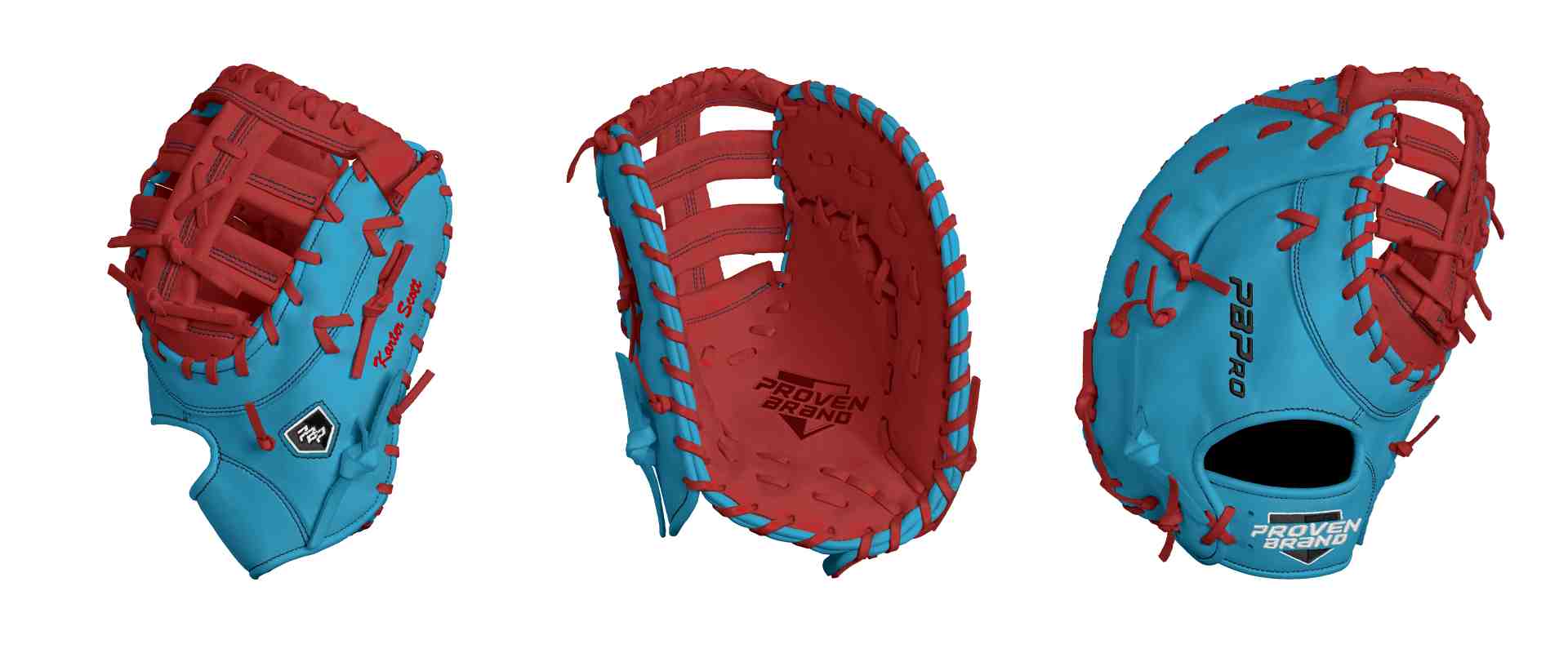 Category: PBPro Custom Product: Baseball Series: Travel Pro Series | USD 159.00 Glove Type: Mitts Size: 13" First Base Palm: Palm (Color: Red) Back Shell: Back Shell (Color: Sea Blue) Web: Web (Color: Red) Binding: Binding (Color: Sea Blue) Lace: Lace (Color: Red) Logo and Label-flat: Logo and Label-flat (Color: Black) Stitch: Stitch (Color: Navy) Embroidery: Embroidery (Color: Black) Hand Throw: Left Hand Thrower Lace Length: Normal Name: Karter Scott (Font Style: Brush Script MT, Font Color: Red, Patch Color: N/A) Flag (Ring Finger): Texas | USD 4.00 Remarks: N/A