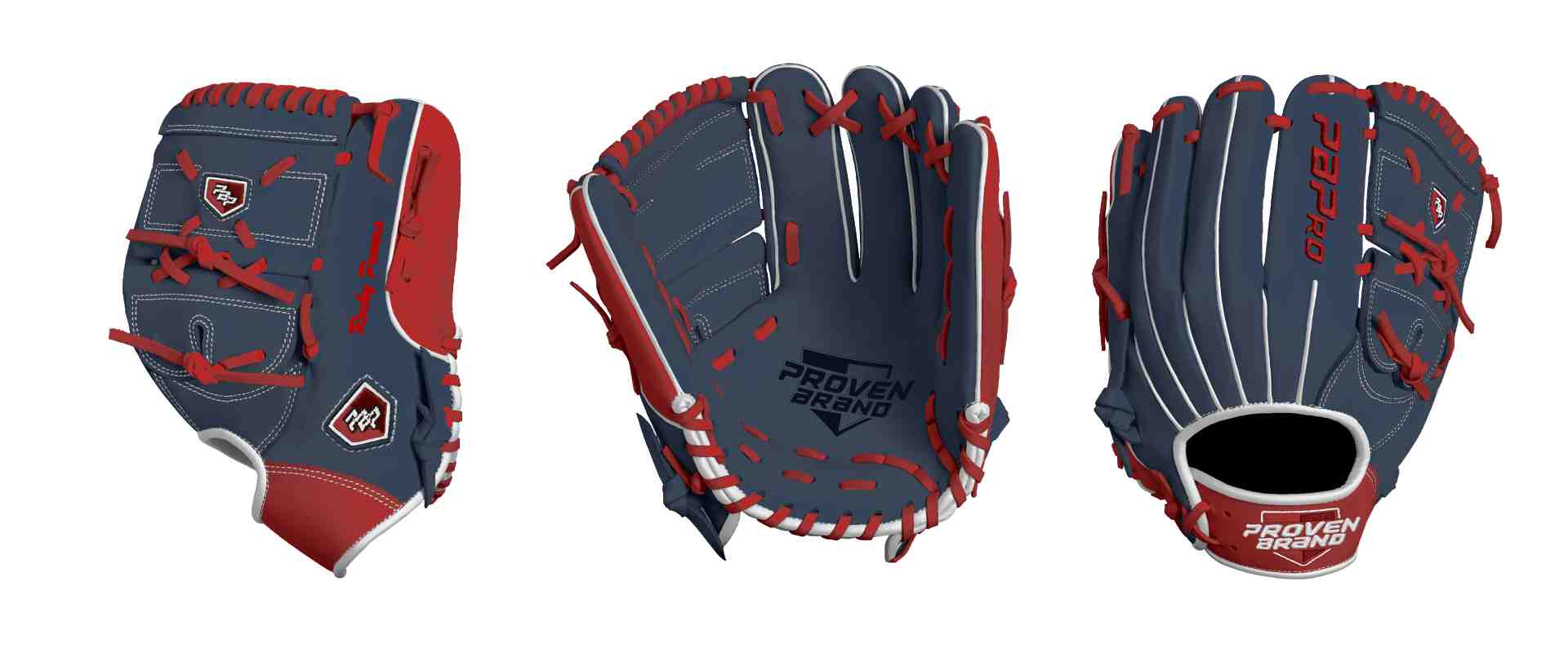 Category: PBPro Custom Product: Baseball Series: Travel Pro Series | USD 159.00 Glove Type: Fielders Size: 12.25" Finger Pad: Without Finger Pad Web: Two Piece Web Palm: Palm (Color: Navy) Back Shell Main: Back Shell Main (Color: Navy) Back Shell Accent: Back Shell Accent (Color: Red) Web: Web (Color: Navy) Welting: Welting (Color: White) Binding: Binding (Color: White) Lace: Lace (Color: Red) Logo and Label-flat: Logo and Label-flat (Color: Red) Stitch: Stitch (Color: White) Embroidery: Embroidery (Color: Red) Hand Throw: Left Hand Thrower Lace Length: Normal Flex (will not show in customizer): Standard Flex: ( Ideal for Youth Player. Glove still needs to break in) Wrist Opening (will not show in customizer): Standard Wrist Name: Rocky Powers (Font Style: Brush Script MT, Font Color: Red, Patch Color: N/A) Flag (Ring Finger): N/A Remarks: N/A