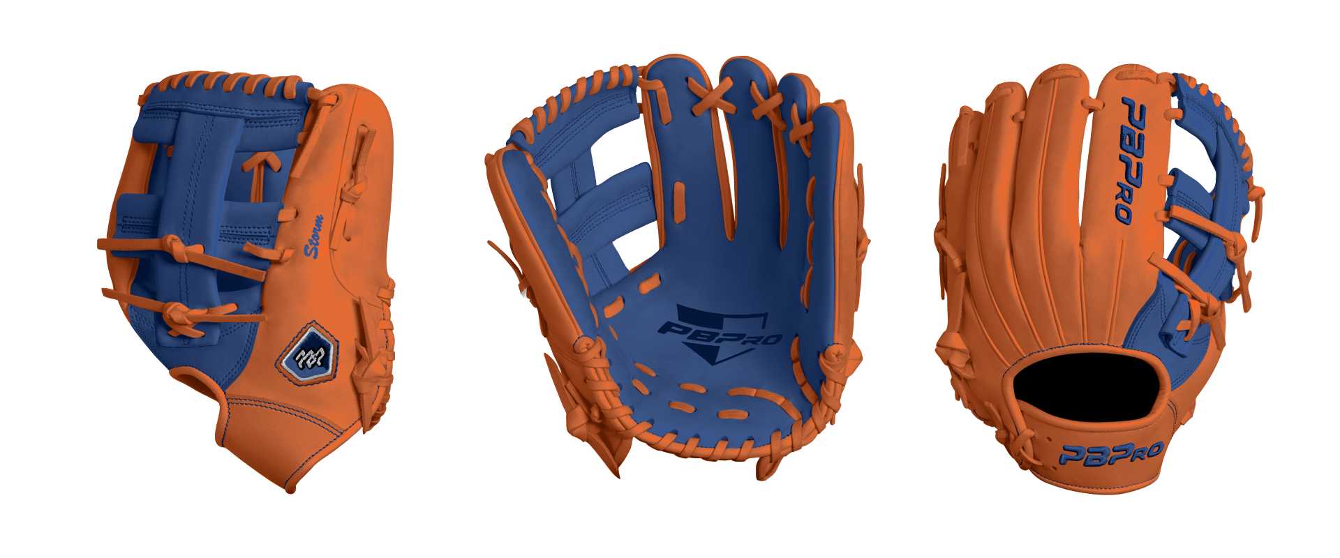 Category: PBPro Custom Product: Baseball Series: Travel Pro Series | USD 149.00 Glove Type: Fielders Size: 11.25" Finger Pad: Without Finger Pad Web: New Cross Web Palm: Palm (Color: Royal) Back Shell Main: Back Shell Main (Color: Orange) Back Shell Accent: Back Shell Accent (Color: Orange) Web: Web (Color: Royal) Welting: Welting (Color: Orange) Binding: Binding (Color: Orange) Lace: Lace (Color: Orange) Logo and Label: Logo and Label (Color: Royal) Stitch: Stitch (Color: Royal) Embroidery: Embroidery (Color: Royal) Hand Throw: Right Hand Thrower Lace Length: Normal Name: Storm (Font Style: Brush Script MT, Font Color: Royal, Patch Color: N/A) Flag (Ring Finger): Texas Remarks: N/A