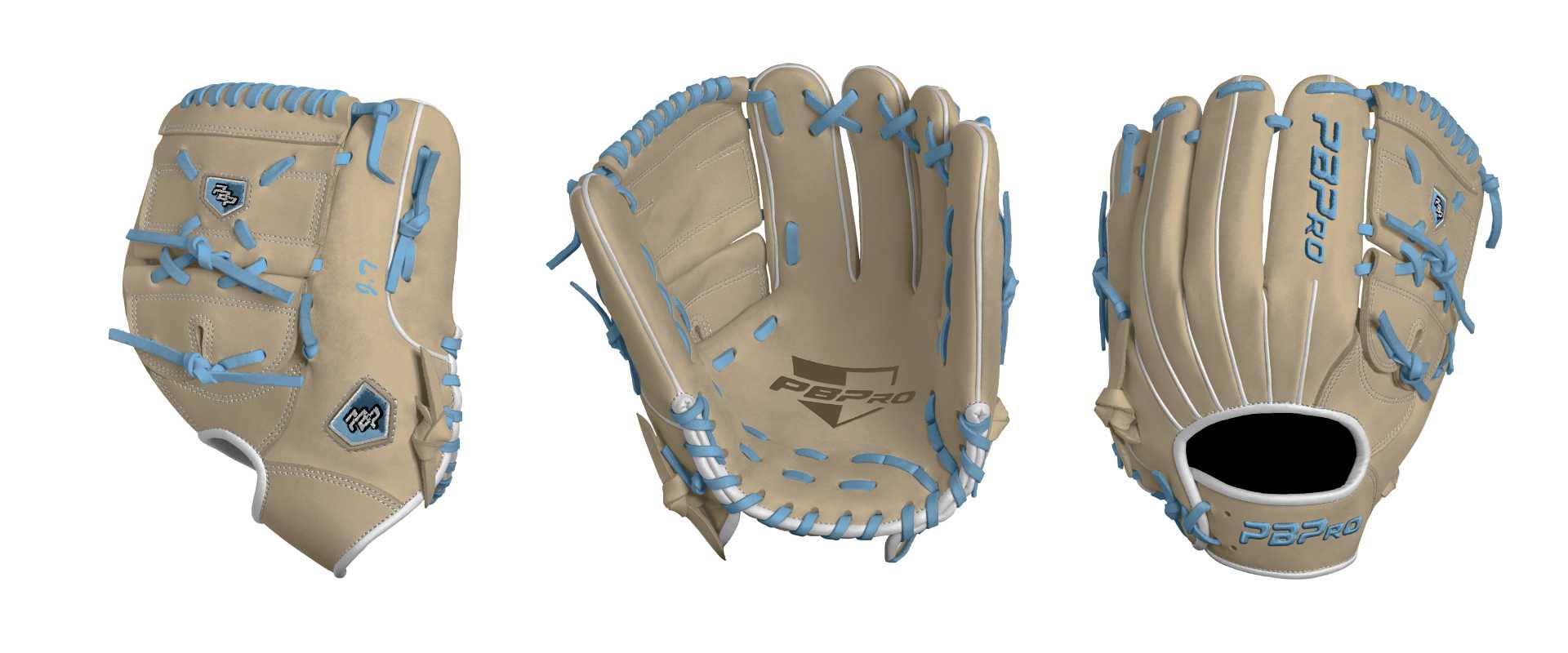 Category: PBPro Custom Product: Baseball Series: Travel Pro Series | USD 149.00 Glove Type: Fielders Size: 12.25" Finger Pad: Without Finger Pad Web: Two Piece Web Palm: Palm (Color: Cream) Back Shell Main: Back Shell Main (Color: Cream) Back Shell Accent: Back Shell Accent (Color: Cream) Web: Web (Color: Cream) Welting: Welting (Color: White) Binding: Binding (Color: White) Lace: Lace (Color: Columbia Blue) Logo and Label: Logo and Label (Color: Columbia Blue) Stitch: Stitch (Color: White) Embroidery: Embroidery (Color: Columbia Blue) Hand Throw: Right Hand Thrower Lace Length: Long (will not show in customizer) Name: J.T (Font Style: Brush Script MT, Font Color: Columbia Blue, Patch Color: N/A) Flag (Ring Finger): Arizona Remarks: N/A