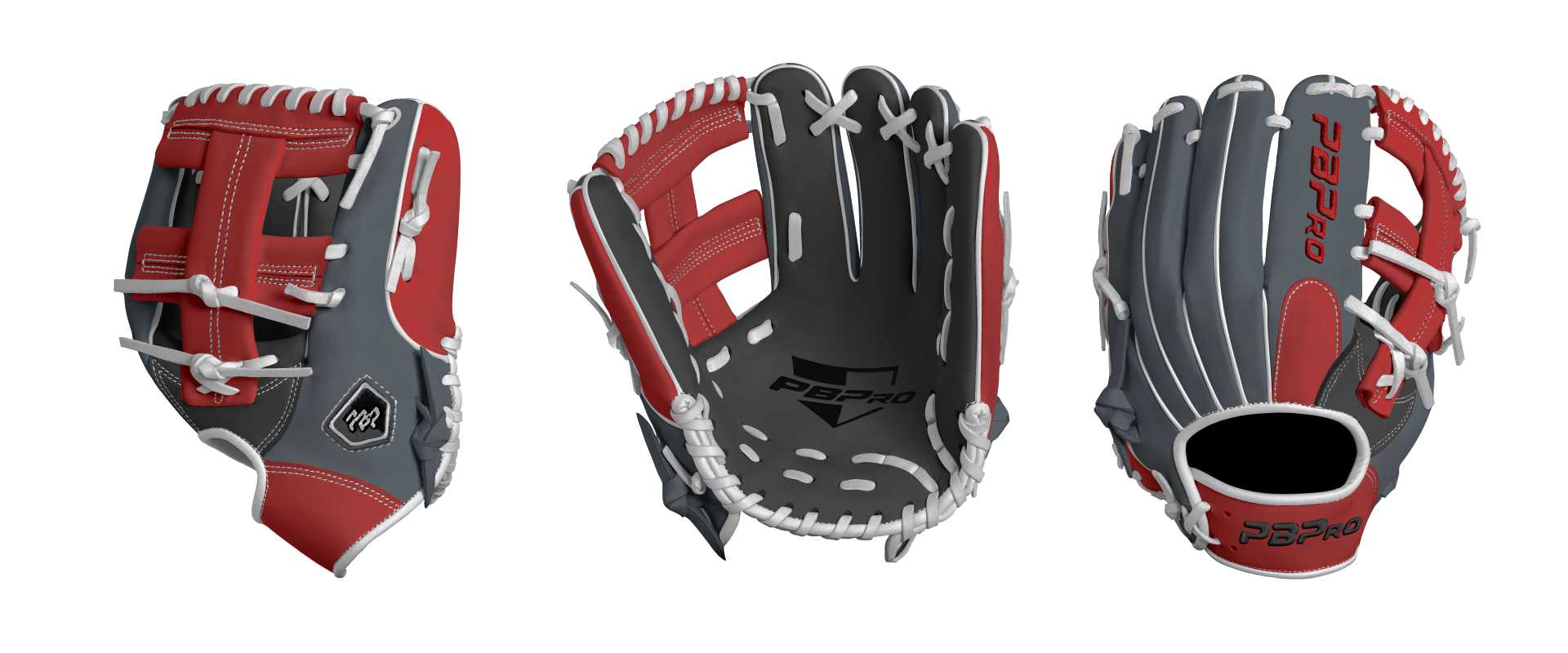 Category: PBPro Custom Product: Baseball Series: Travel Pro Series | USD 149.00 Glove Type: Fielders Size: 11.75" Finger Pad: With Finger Pad Web: New Cross Web Palm: Palm (Color: Black) Back Shell Main: Back Shell Main (Color: Steel Gray) Back Shell Accent: Back Shell Accent (Color: Red) Web: Web (Color: Red) Finger Pad: Finger Pad (Color: Red) Welting: Welting (Color: White) Binding: Binding (Color: White) Lace: Lace (Color: White) Logo and Label: Logo and Label (Color: Black) Stitch: Stitch (Color: White) Embroidery: Embroidery (Color: Red) Hand Throw: Right Hand Thrower Lace Length: Normal Flag (Ring Finger): Chicago Remarks: N/A