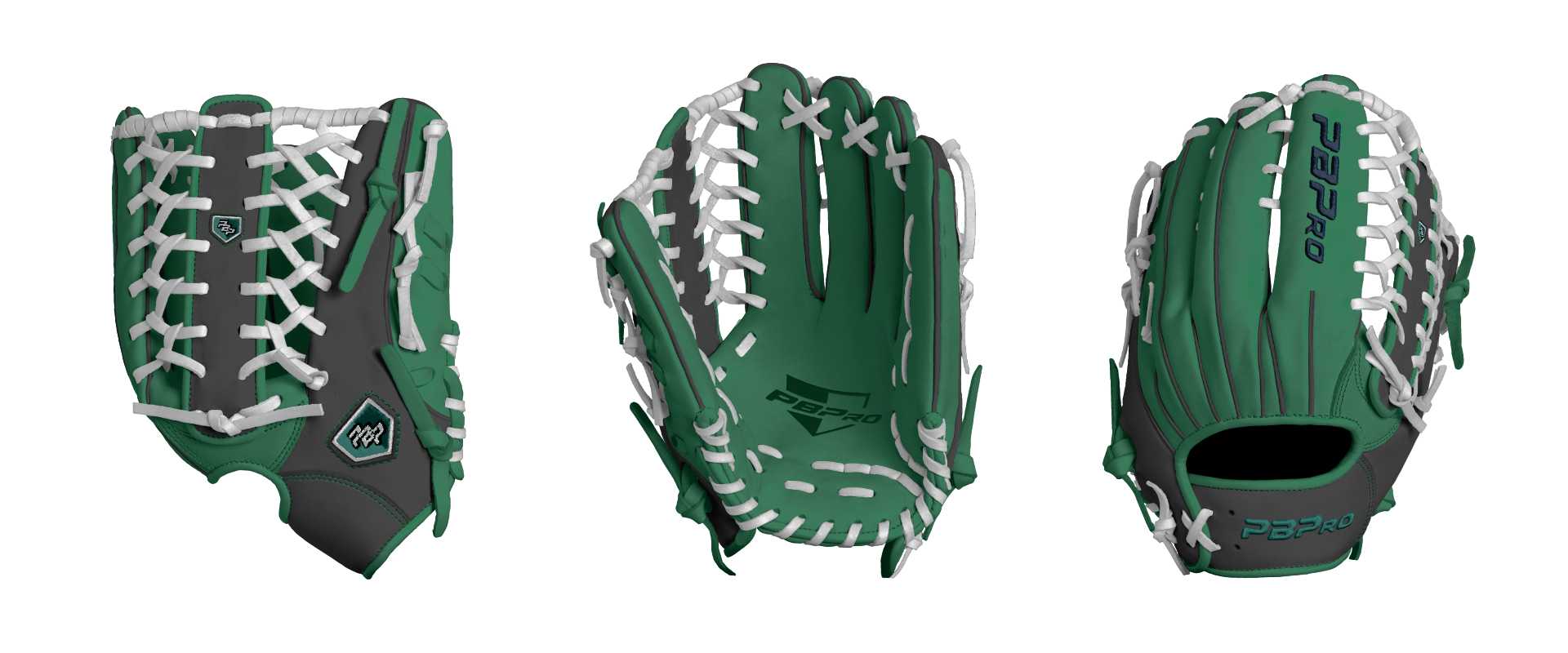 Category: PBPro Custom Product: Baseball Series: Travel Pro Series | USD 149.00 Glove Type: Fielders Size: 12.5" Finger Pad: Without Finger Pad Web: Trapeze Web Palm: Palm (Color: Green) Back Shell Main: Back Shell Main (Color: Green) Back Shell Accent: Back Shell Accent (Color: Black) Web: Web (Color: Black) Welting: Welting (Color: Black) Binding: Binding (Color: Green) Lace: Lace (Color: White) Logo and Label: Logo and Label (Color: Northwest Green) Stitch: Stitch (Color: Green) Embroidery: Embroidery (Color: Navy) Hand Throw: Right Hand Thrower Lace Length: Normal Flag (Ring Finger): N/A Remarks: N/A