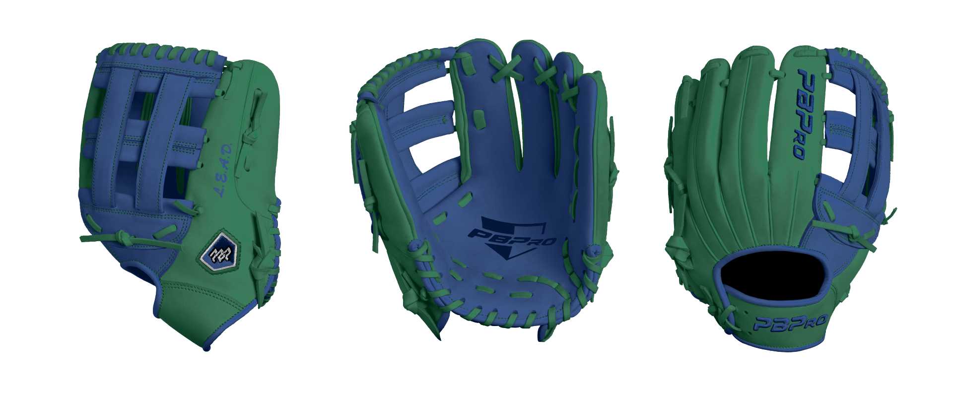 Category: PBPro Custom Product: Baseball Series: Travel Pro Series | USD 149.00 Glove Type: Fielders Size: 11.5" Finger Pad: Without Finger Pad Web: Pro H Web Palm: Palm (Color: Royal) Back Shell Main: Back Shell Main (Color: Green) Back Shell Accent: Back Shell Accent (Color: Green) Web: Web (Color: Royal) Welting: Welting (Color: Green) Binding: Binding (Color: Royal) Lace: Lace (Color: Green) Logo and Label: Logo and Label (Color: Royal) Stitch: Stitch (Color: Green) Embroidery: Embroidery (Color: Royal) Hand Throw: Right Hand Thrower Lace Length: Normal Name: L.E.A.D. (Font Style: Brush Script MT, Font Color: Royal, Patch Color: N/A) Flag (Ring Finger): N/A Remarks: The green/blue LEAD logo goes on this one.