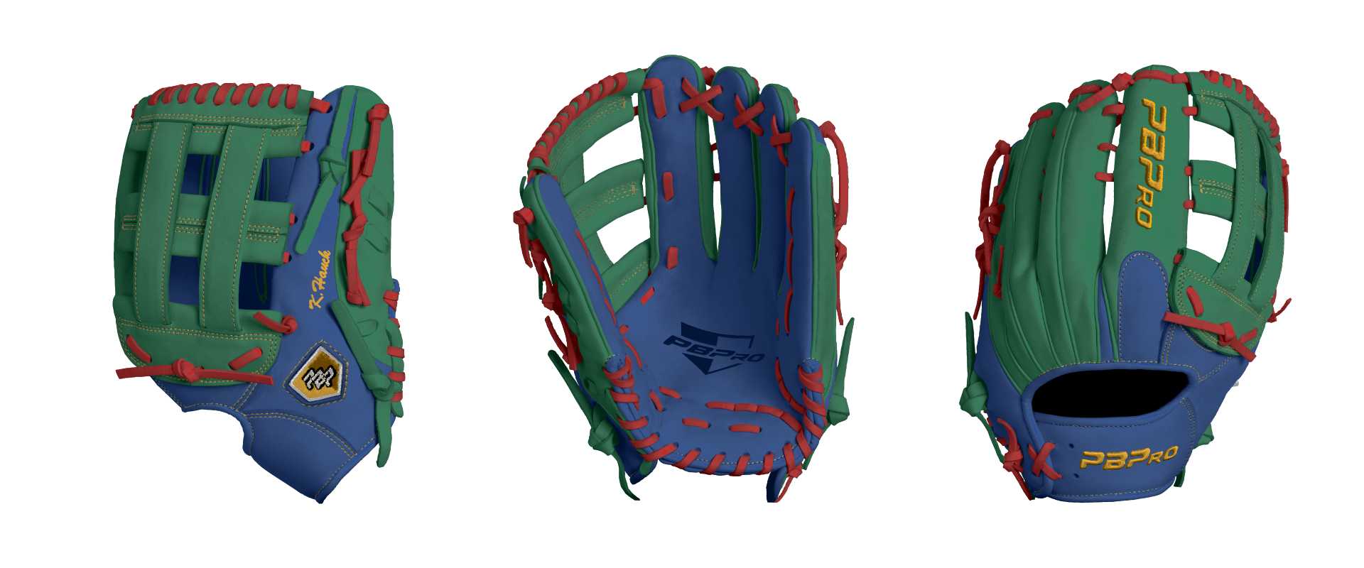 Category: PBPro Custom Product: Baseball Series: Travel Pro Series | USD 149.00 Glove Type: Fielders Size: 12.5" Finger Pad: With Finger Pad Web: Pro H Web Palm: Palm (Color: Royal) Back Shell Main: Back Shell Main (Color: Green) Back Shell Accent: Back Shell Accent (Color: Royal) Web: Web (Color: Green) Finger Pad: Finger Pad (Color: Royal) Welting: Welting (Color: Green) Binding: Binding (Color: Royal) Lace: Lace (Color: Red) Logo and Label: Logo and Label (Color: G.Yellow) Stitch: Stitch (Color: Vegas Gold) Embroidery: Embroidery (Color: G.Yellow) Hand Throw: Right Hand Thrower Lace Length: Normal Name: K.Hauck (Font Style: Brush Script MT, Font Color: G.Yellow, Patch Color: N/A) Flag (Ring Finger): United States Remarks: N/A