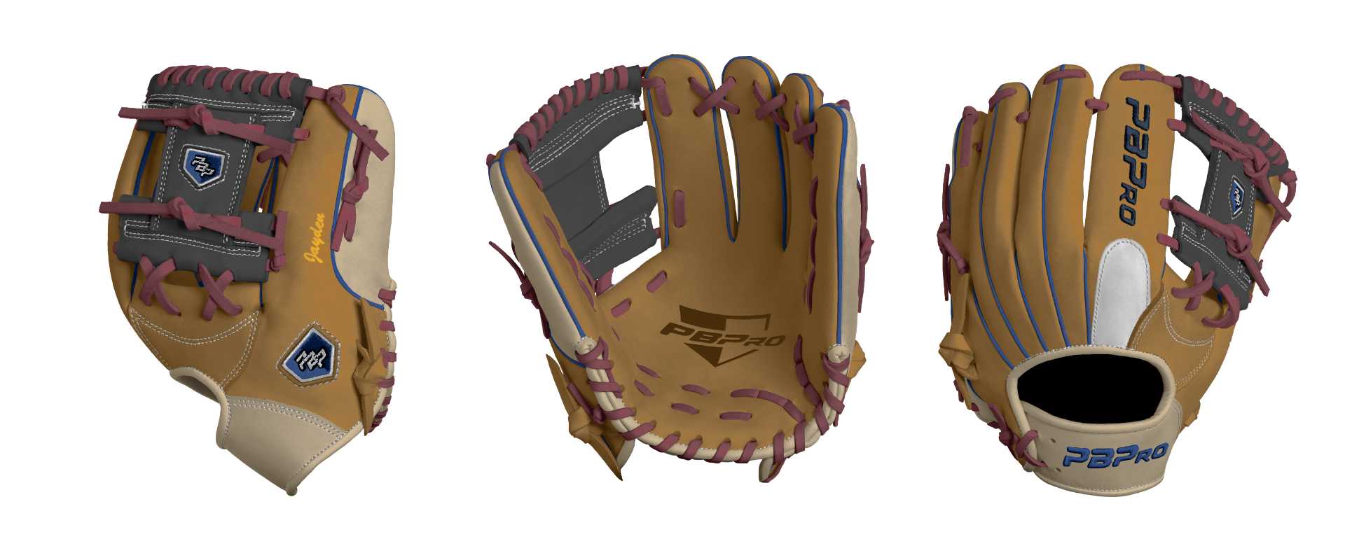 Category: PBPro Custom Product: Baseball Series: Travel Pro Series | USD 149.00 Glove Type: Fielders Size: 11.25" Finger Pad: With Finger Pad Web: Pro I Web Palm: Palm (Color: Tan) Back Shell Main: Back Shell Main (Color: Tan) Back Shell Accent: Back Shell Accent (Color: Cream) Web: Web (Color: Black) Finger Pad: Finger Pad (Color: White) Welting: Welting (Color: Royal) Binding: Binding (Color: Cream) Lace: Lace (Color: Maroon) Logo and Label: Logo and Label (Color: Royal) Stitch: Stitch (Color: White) Embroidery: Embroidery (Color: Navy) Hand Throw: Right Hand Thrower Lace Length: Normal Name: Jayden (Font Style: Brush Script MT, Font Color: G.Yellow, Patch Color: N/A) Flag (Ring Finger): United States Remarks: N/A