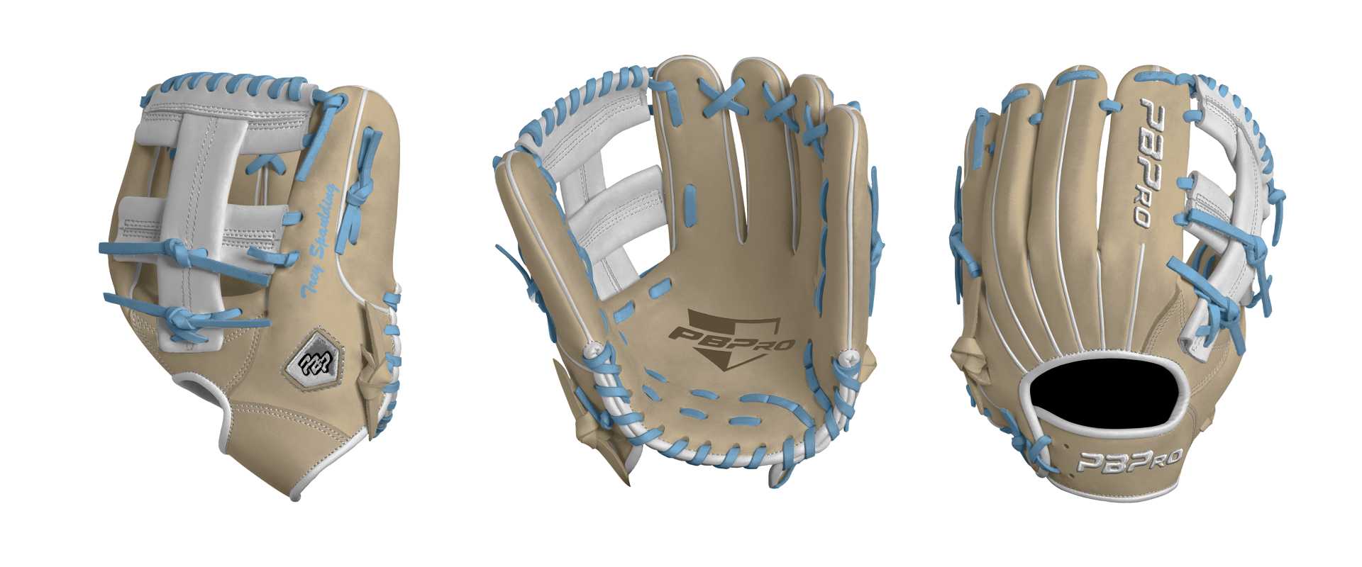 Category: PBPro Custom Product: Baseball Series: Travel Pro Series | USD 149.00 Glove Type: Fielders Size: 11.25" Finger Pad: Without Finger Pad Web: New Cross Web Palm: Palm (Color: Cream) Back Shell Main: Back Shell Main (Color: Cream) Back Shell Accent: Back Shell Accent (Color: Cream) Web: Web (Color: White) Welting: Welting (Color: White) Binding: Binding (Color: White) Lace: Lace (Color: Columbia Blue) Logo and Label: Logo and Label (Color: White) Stitch: Stitch (Color: White) Embroidery: Embroidery (Color: White) Hand Throw: Right Hand Thrower Lace Length: Long (will not show in customizer) Name: Trey Spaulding (Font Style: Brush Script MT, Font Color: Columbia Blue, Patch Color: N/A) Flag (Ring Finger): United States Remarks: N/A