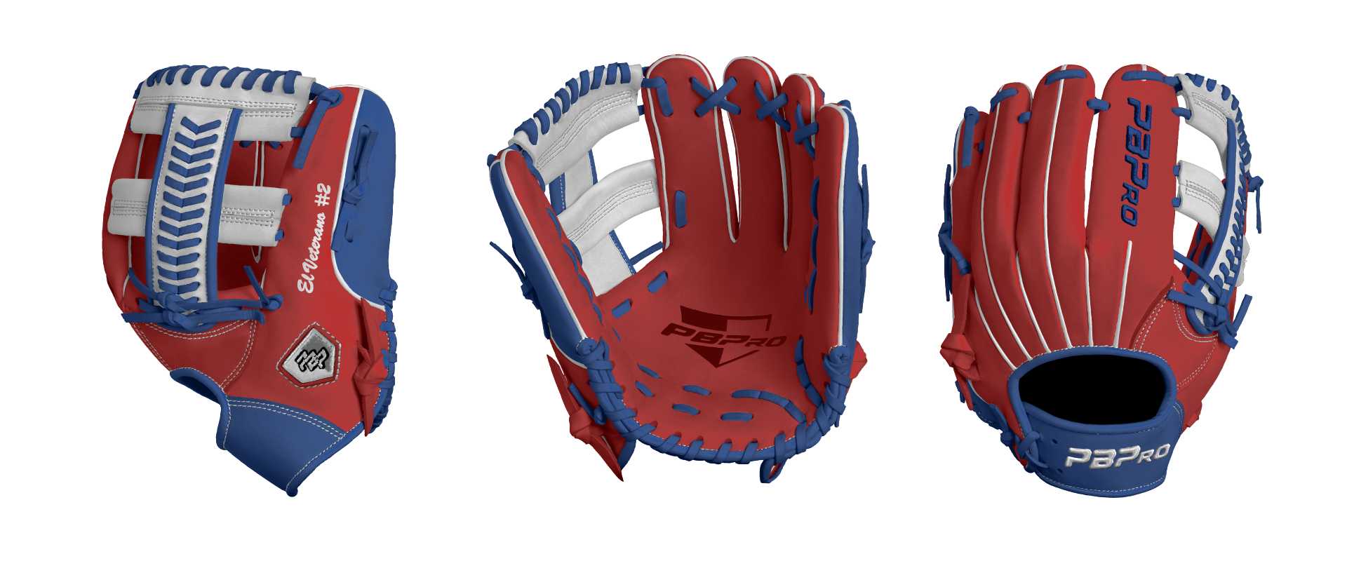 Category: PBPro Custom Product: Baseball Series: Travel Pro Series | USD 149.00 Glove Type: Fielders Size: 11.25" Finger Pad: Without Finger Pad Web: X-Laced Single Post Web Palm: Palm (Color: Red) Back Shell Main: Back Shell Main (Color: Red) Back Shell Accent: Back Shell Accent (Color: Royal) Web: Web (Color: White) Welting: Welting (Color: White) Binding: Binding (Color: Royal) Lace: Lace (Color: Royal) Logo and Label: Logo and Label (Color: White) Stitch: Stitch (Color: White) Embroidery: Embroidery (Color: Royal) Hand Throw: Right Hand Thrower Lace Length: Normal Name: El Veterano #2 (Font Style: Brush Script MT, Font Color: White, Patch Color: N/A) Flag (Ring Finger): Dominican Republic Remarks: N/A