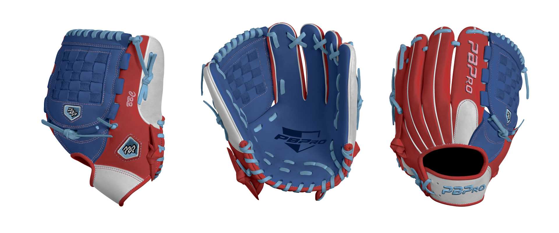 Category: PBPro Custom Product: Baseball Series: Travel Pro Series | USD 149.00 Glove Type: Fielders Size: 11.5" Finger Pad: With Finger Pad Web: Basket Web Palm: Palm (Color: Royal) Back Shell Main: Back Shell Main (Color: Red) Back Shell Accent: Back Shell Accent (Color: White) Web: Web (Color: Royal) Finger Pad: Finger Pad (Color: White) Welting: Welting (Color: White) Binding: Binding (Color: Red) Lace: Lace (Color: Columbia Blue) Logo and Label: Logo and Label (Color: Columbia Blue) Stitch: Stitch (Color: C.Pink) Embroidery: Embroidery (Color: C.Pink) Hand Throw: Right Hand Thrower Lace Length: Long (will not show in customizer) Name: BBC (Font Style: Brush Script MT, Font Color: C.Pink, Patch Color: N/A) Flag (Ring Finger): United States Remarks: N/A