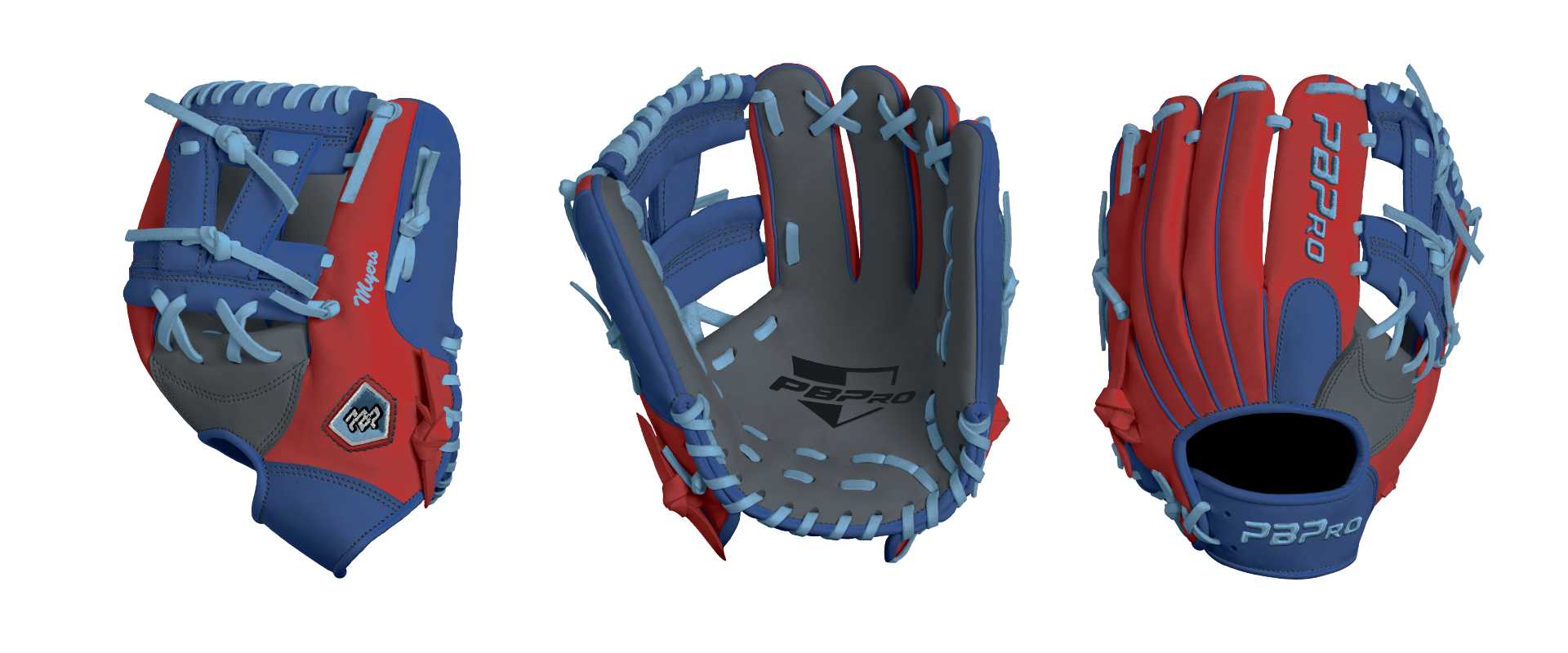 Category: PBPro Custom Product: Baseball Series: Travel Pro Series | USD 149.00 Glove Type: Fielders Size: 11.5" Finger Pad: With Finger Pad Web: Pro V Web Palm: Palm (Color: Steel Gray) Back Shell Main: Back Shell Main (Color: Red) Back Shell Accent: Back Shell Accent (Color: Royal) Web: Web (Color: Royal) Finger Pad: Finger Pad (Color: Royal) Welting: Welting (Color: Royal) Binding: Binding (Color: Royal) Lace: Lace (Color: Columbia Blue) Logo and Label: Logo and Label (Color: Columbia Blue) Stitch: Stitch (Color: Steel Gray) Embroidery: Embroidery (Color: Columbia Blue) Hand Throw: Right Hand Thrower Lace Length: Normal Name: Myers (Font Style: Brush Script MT, Font Color: Columbia Blue, Patch Color: N/A) Flag (Ring Finger): United States Remarks: N/A
