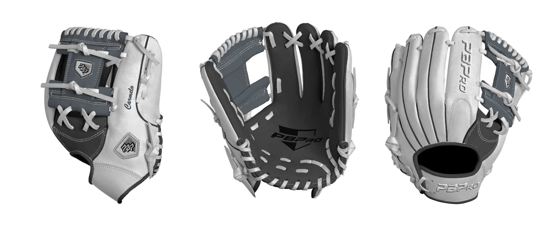 Category: PBPro Custom Product: Baseball Series: Travel Pro Series | USD 149.00 Glove Type: Fielders Size: 11.5" Finger Pad: With Finger Pad Web: Pro I Web Palm: Palm (Color: Black) Back Shell Main: Back Shell Main (Color: White) Back Shell Accent: Back Shell Accent (Color: White) Web: Web (Color: Steel Gray) Finger Pad: Finger Pad (Color: White) Welting: Welting (Color: Black) Binding: Binding (Color: Black) Lace: Lace (Color: White) Logo and Label: Logo and Label (Color: White) Stitch: Stitch (Color: White) Embroidery: Embroidery (Color: White) Hand Throw: Right Hand Thrower Lace Length: Normal Name: Carmelo (Font Style: Brush Script MT, Font Color: Steel Gray, Patch Color: N/A) Flag (Ring Finger): N/A Remarks: N/A