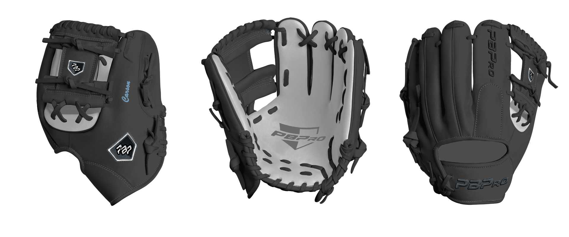 Category: PBPro Custom Product: Baseball Series: Travel Pro Series | USD 149.00 Glove Type: Fielders Size: 11" Finger Pad: With Finger Pad Web: Pro I Web Palm: Palm (Color: White) Back Shell Main: Back Shell Main (Color: Black) Back Shell Accent: Back Shell Accent (Color: Black) Web: Web (Color: Black) Finger Pad: Finger Pad (Color: Black) Welting: Welting (Color: Black) Binding: Binding (Color: Black) Lace: Lace (Color: Black) Logo and Label: Logo and Label (Color: Steel Gray) Stitch: Stitch (Color: Steel Gray) Embroidery: Embroidery (Color: Black) Hand Throw: Right Hand Thrower Lace Length: Normal Name: Carson (Font Style: Brush Script MT, Font Color: Columbia Blue, Patch Color: N/A) Flag (Ring Finger): North Carolina Remarks: N/A