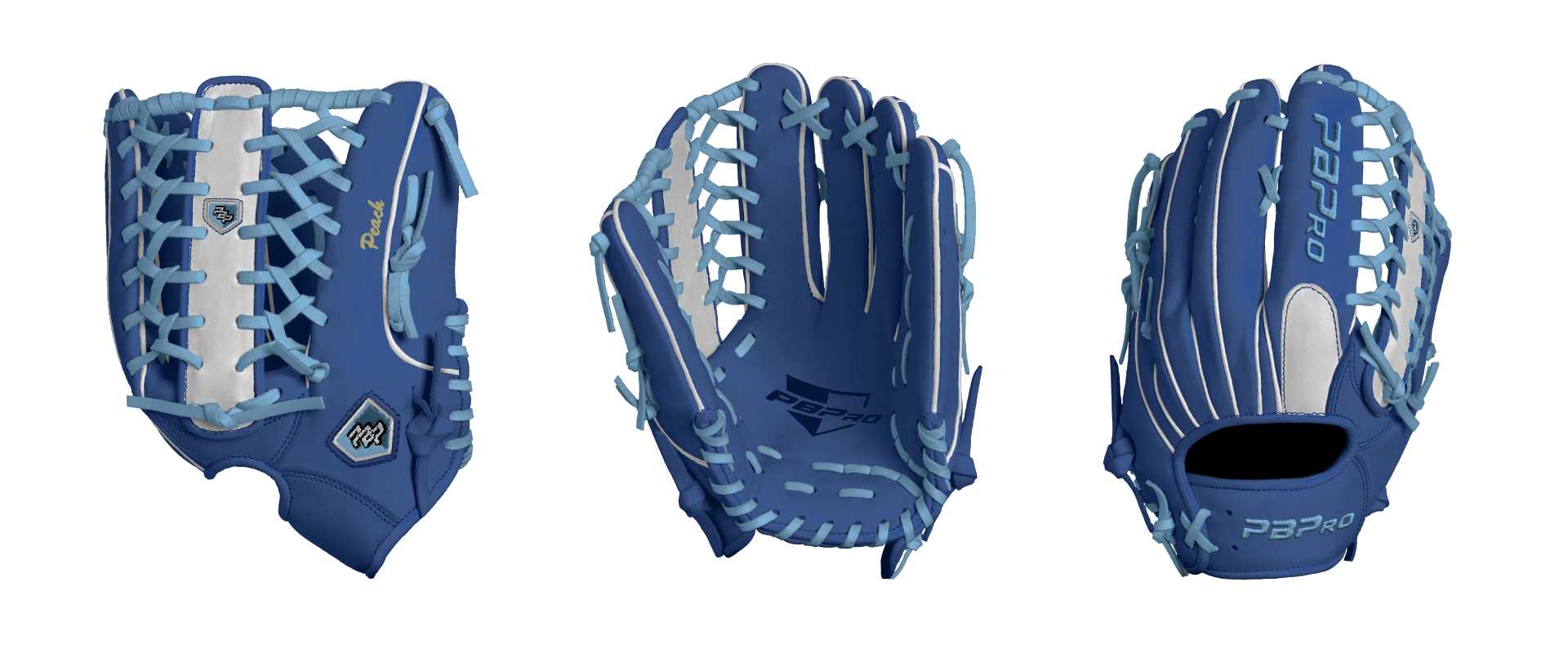 Category: PBPro Custom Product: Baseball Series: Travel Pro Series | USD 149.00 Glove Type: Fielders Size: 12.75" Finger Pad: With Finger Pad Web: Trapeze Web Palm: Palm (Color: Royal) Back Shell Main: Back Shell Main (Color: Royal) Back Shell Accent: Back Shell Accent (Color: Royal) Web: Web (Color: White) Finger Pad: Finger Pad (Color: White) Welting: Welting (Color: White) Binding: Binding (Color: Royal) Lace: Lace (Color: Columbia Blue) Logo and Label: Logo and Label (Color: Columbia Blue) Stitch: Stitch (Color: Royal) Embroidery: Embroidery (Color: Columbia Blue) Hand Throw: Left Hand Thrower Lace Length: Normal Name: Peach (Font Style: Brush Script MT, Font Color: Vegas Gold, Patch Color: N/A) Flag (Ring Finger): United States Remarks: N/A