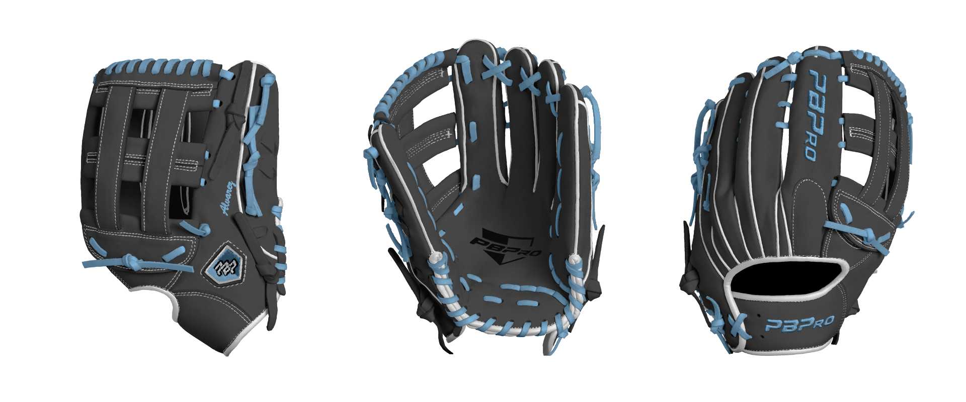 Category: PBPro Custom Product: Baseball Series: Travel Pro Series | USD 149.00 Glove Type: Fielders Size: 12.5" Finger Pad: With Finger Pad Web: Pro H Web Palm: Palm (Color: Black) Back Shell Main: Back Shell Main (Color: Black) Back Shell Accent: Back Shell Accent (Color: Black) Web: Web (Color: Black) Finger Pad: Finger Pad (Color: Black) Welting: Welting (Color: White) Binding: Binding (Color: White) Lace: Lace (Color: Columbia Blue) Logo and Label: Logo and Label (Color: Columbia Blue) Stitch: Stitch (Color: White) Embroidery: Embroidery (Color: Columbia Blue) Hand Throw: Right Hand Thrower Lace Length: Normal Name: Alvarez (Font Style: Brush Script MT, Font Color: Columbia Blue, Patch Color: N/A) Flag (Ring Finger): N/A Remarks: N/A