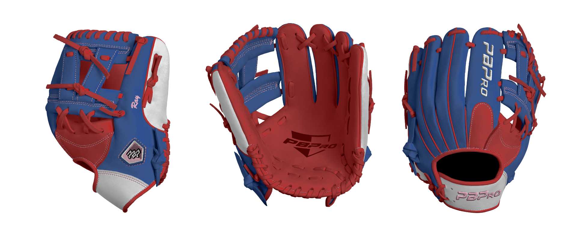 Category: PBPro Custom Product: Baseball Series: Travel Pro Series | USD 149.00 Glove Type: Fielders Size: 11.5" Finger Pad: With Finger Pad Web: Pro V Web Palm: Palm (Color: Red) Back Shell Main: Back Shell Main (Color: Royal) Back Shell Accent: Back Shell Accent (Color: White) Web: Web (Color: Royal) Finger Pad: Finger Pad (Color: Red) Welting: Welting (Color: Red) Binding: Binding (Color: Red) Lace: Lace (Color: Red) Logo and Label: Logo and Label (Color: C.Pink) Stitch: Stitch (Color: C.Pink) Embroidery: Embroidery (Color: White) Hand Throw: Right Hand Thrower Lace Length: Normal Name: Ray (Font Style: Brush Script MT, Font Color: C.Pink, Patch Color: N/A) Flag (Ring Finger): Georgia Remarks: Put # 12 on it