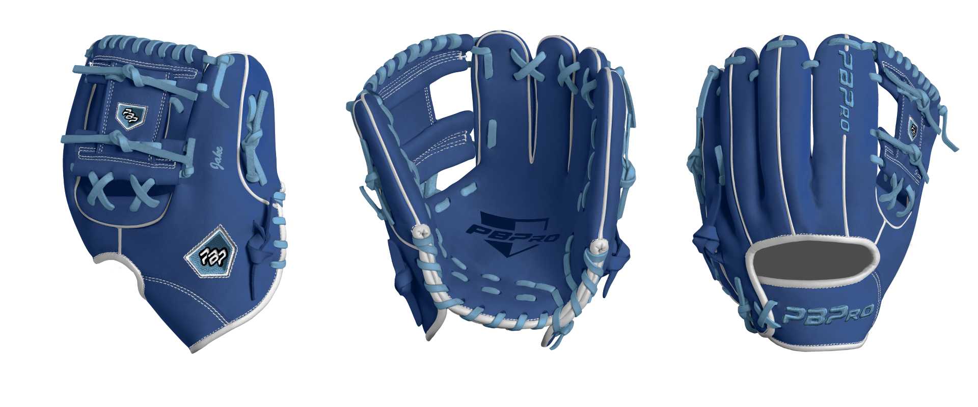 Category: PBPro Custom Product: Baseball Series: Travel Pro Series | USD 149.00 Glove Type: Fielders Size: 11" Finger Pad: Without Finger Pad Web: Pro I Web Palm: Palm (Color: Royal) Back Shell Main: Back Shell Main (Color: Royal) Back Shell Accent: Back Shell Accent (Color: Royal) Web: Web (Color: Royal) Welting: Welting (Color: White) Binding: Binding (Color: White) Lace: Lace (Color: Columbia Blue) Logo and Label: Logo and Label (Color: Columbia Blue) Stitch: Stitch (Color: White) Embroidery: Embroidery (Color: Columbia Blue) Hand Throw: Right Hand Thrower Lace Length: Normal Name: Jake (Font Style: Brush Script MT, Font Color: Columbia Blue, Patch Color: N/A) Flag (Ring Finger): N/A Remarks: N/A