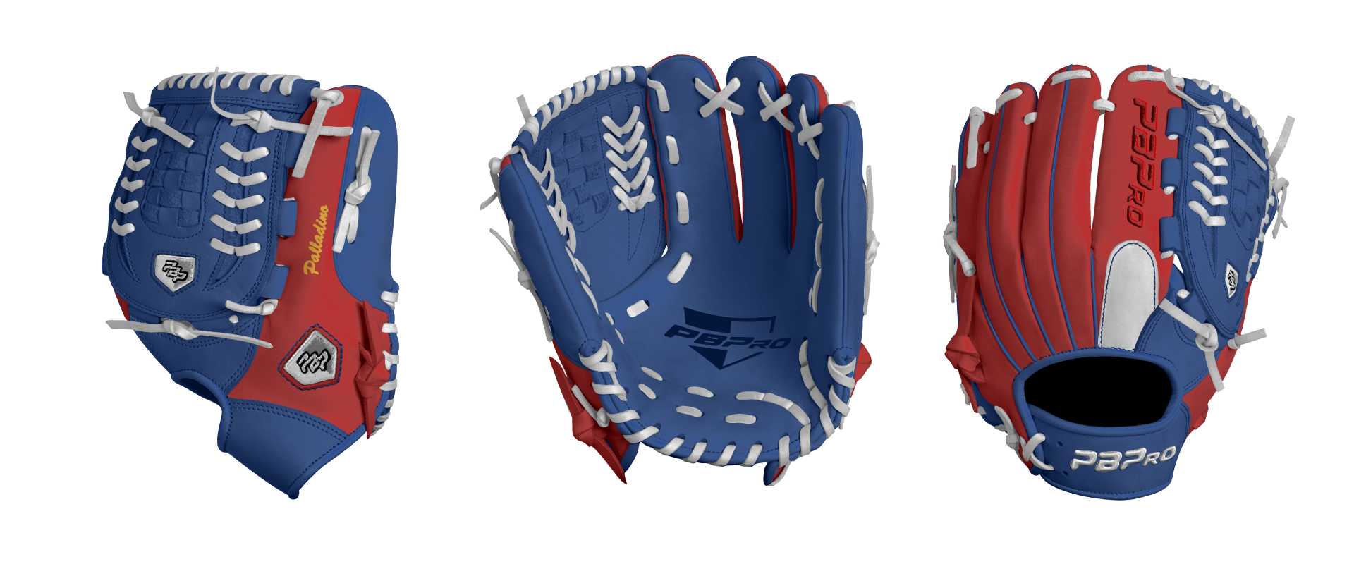 Category: PBPro Custom Product: Baseball Series: Travel Pro Series | USD 149.00 Glove Type: Fielders Size: 12" Finger Pad: With Finger Pad Web: Grid and Net Web Palm: Palm (Color: Royal) Back Shell Main: Back Shell Main (Color: Red) Back Shell Accent: Back Shell Accent (Color: Royal) Web: Web (Color: Royal) Finger Pad: Finger Pad (Color: White) Welting: Welting (Color: Royal) Binding: Binding (Color: Royal) Lace: Lace (Color: White) Logo and Label: Logo and Label (Color: White) Stitch: Stitch (Color: Royal) Embroidery: Embroidery (Color: Red) Hand Throw: Left Hand Thrower Lace Length: Normal Name: Palladino (Font Style: Brush Script MT, Font Color: G.Yellow, Patch Color: N/A) Flag (Ring Finger): Arizona Remarks: N/A