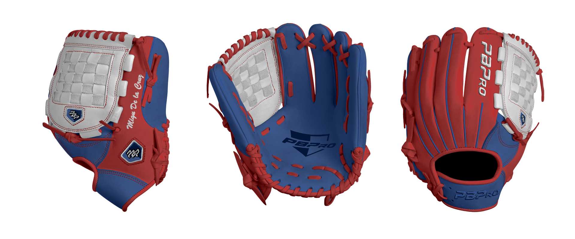 Category: PBPro Custom Product: Baseball Series: Travel Pro Series | USD 149.00 Glove Type: Fielders Size: 12" Finger Pad: Without Finger Pad Web: Basket Web Palm: Palm (Color: Royal) Back Shell Main: Back Shell Main (Color: Red) Back Shell Accent: Back Shell Accent (Color: Royal) Web: Web (Color: White) Welting: Welting (Color: Royal) Binding: Binding (Color: Red) Lace: Lace (Color: Red) Logo and Label: Logo and Label (Color: Royal) Stitch: Stitch (Color: Red) Embroidery: Embroidery (Color: White) Hand Throw: Right Hand Thrower Lace Length: Long (will not show in customizer) Name: Migu De la Cruz (Font Style: Brush Script MT, Font Color: White, Patch Color: N/A) Flag (Ring Finger): Dominican Republic Remarks: N/A