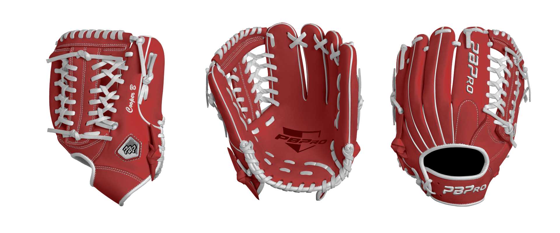 Category: PBPro Custom Product: Baseball Series: Travel Pro Series | USD 149.00 Glove Type: Fielders Size: 11.5" Finger Pad: With Finger Pad Web: Modified Trap Web Palm: Palm (Color: Red) Back Shell Main: Back Shell Main (Color: Red) Back Shell Accent: Back Shell Accent (Color: Red) Web: Web (Color: Red) Finger Pad: Finger Pad (Color: Red) Welting: Welting (Color: White) Binding: Binding (Color: White) Lace: Lace (Color: White) Logo and Label: Logo and Label (Color: White) Stitch: Stitch (Color: White) Embroidery: Embroidery (Color: White) Hand Throw: Right Hand Thrower Lace Length: Normal Name: Cooper B (Font Style: Brush Script MT, Font Color: White, Patch Color: N/A) Flag (Ring Finger): United States Remarks: N/A