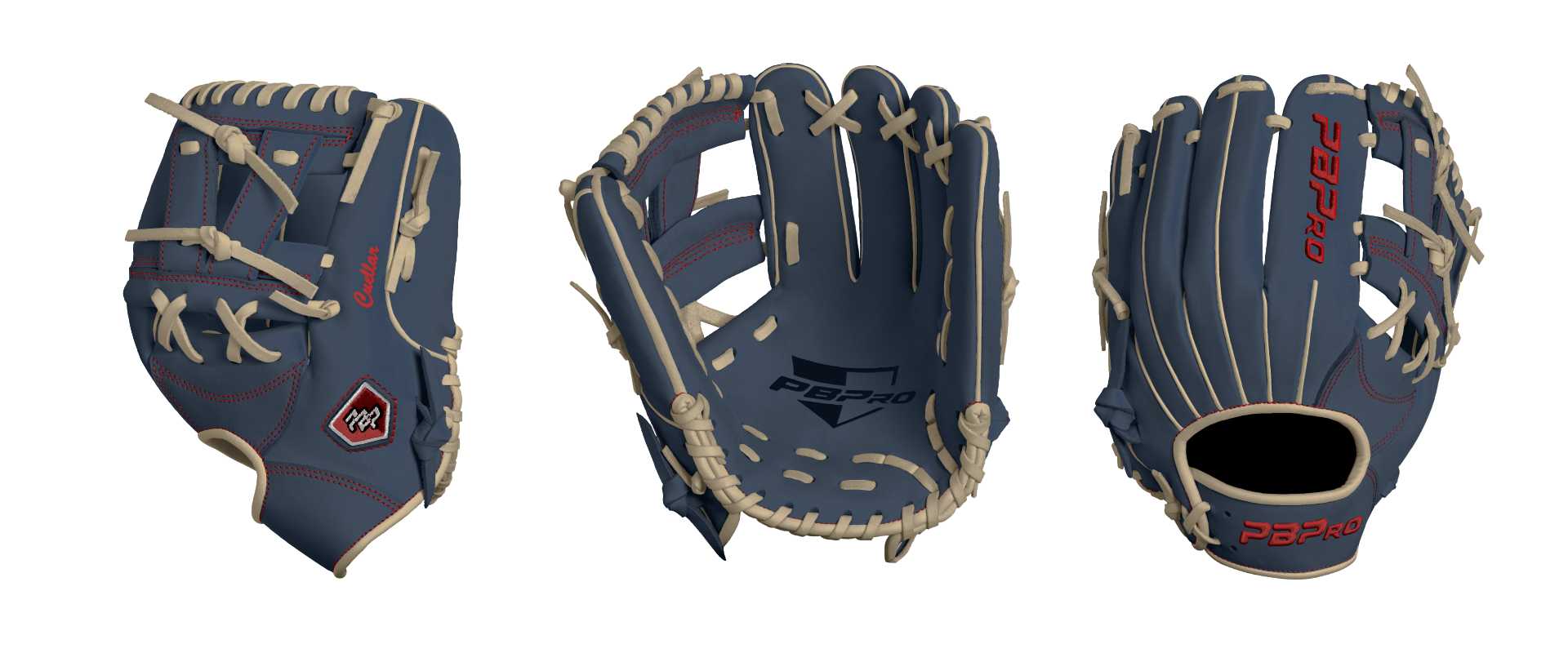 Category: PBPro Custom Product: Baseball Series: Travel Pro Series | USD 149.00 Glove Type: Fielders Size: 11.5" Finger Pad: Without Finger Pad Web: Pro V Web Palm: Palm (Color: Navy) Back Shell Main: Back Shell Main (Color: Navy) Back Shell Accent: Back Shell Accent (Color: Navy) Web: Web (Color: Navy) Welting: Welting (Color: Cream) Binding: Binding (Color: Cream) Lace: Lace (Color: Cream) Logo and Label: Logo and Label (Color: Red) Stitch: Stitch (Color: Red) Embroidery: Embroidery (Color: Red) Hand Throw: Right Hand Thrower Lace Length: Long (will not show in customizer) Name: Cuellar (Font Style: Brush Script MT, Font Color: Red, Patch Color: N/A) Flag (Ring Finger): N/A Remarks: N/A