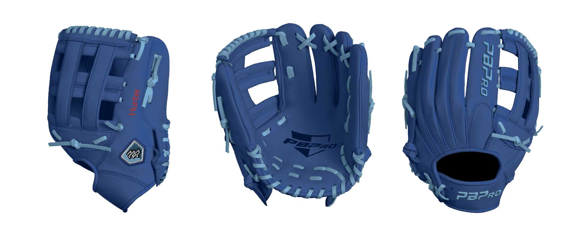Category: PBPro Custom Product: Baseball Series: Travel Pro Series | USD 149.00 Glove Type: Fielders Size: 12" Finger Pad: With Finger Pad Web: Pro H Web Palm: Palm (Color: Royal) Back Shell Main: Back Shell Main (Color: Royal) Back Shell Accent: Back Shell Accent (Color: Royal) Web: Web (Color: Royal) Finger Pad: Finger Pad (Color: Royal) Welting: Welting (Color: Royal) Binding: Binding (Color: Royal) Lace: Lace (Color: Columbia Blue) Logo and Label: Logo and Label (Color: Columbia Blue) Stitch: Stitch (Color: Royal) Embroidery: Embroidery (Color: Columbia Blue) Hand Throw: Right Hand Thrower Lace Length: Normal Name: Hunter (Font Style: Pontano Sans, Font Color: Red, Patch Color: N/A) Flag (Ring Finger): United States Remarks: N/A