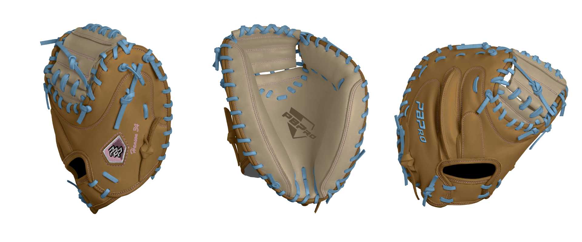 Category: PBPro Custom Product: Baseball Series: Travel Pro Series | USD 149.00 Glove Type: Mitts Size: 33" Catcher's Mitt Palm: Palm (Color: Cream) Back Shell: Back Shell (Color: Tan) Web: Web (Color: Cream) Binding: Binding (Color: Tan) Lace: Lace (Color: Columbia Blue) Logo: Logo (Color: C.Pink) Stitch: Stitch (Color: C.Pink) Embroidery: Embroidery (Color: Columbia Blue) Hand Throw: Right Hand Thrower Lace Length: Normal Name: Hanson 34 (Font Style: Brush Script MT, Font Color: C.Pink, Patch Color: N/A) Flag (Ring Finger): N/A Remarks: Make sure it has Hanson 34 on it