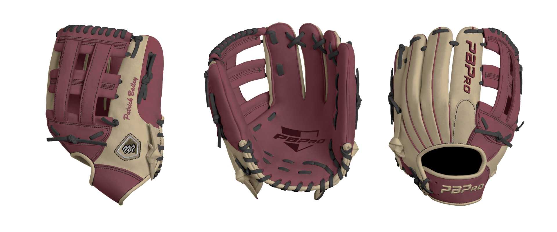 Category: PBPro Custom Product: Baseball Series: Travel Pro Series | USD 149.00 Glove Type: Fielders Size: 12" Finger Pad: With Finger Pad Web: Pro H Web Palm: Palm (Color: Maroon) Back Shell Main: Back Shell Main (Color: Cream) Back Shell Accent: Back Shell Accent (Color: Maroon) Web: Web (Color: Maroon) Finger Pad: Finger Pad (Color: Cream) Welting: Welting (Color: Maroon) Binding: Binding (Color: Cream) Lace: Lace (Color: Black) Logo and Label: Logo and Label (Color: Cream) Stitch: Stitch (Color: Black) Embroidery: Embroidery (Color: Maroon) Hand Throw: Right Hand Thrower Lace Length: Long (will not show in customizer) Name: Patrick Bailey (Font Style: Brush Script MT, Font Color: Maroon, Patch Color: N/A) Flag (Ring Finger): United States Remarks: N/A