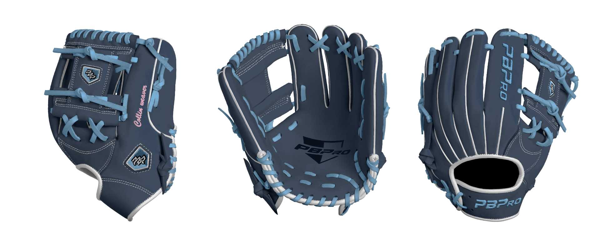 Category: PBPro Custom Product: Baseball Series: Travel Pro Series | USD 149.00 Glove Type: Fielders Size: 11.25" Finger Pad: Without Finger Pad Web: Pro I Web Palm: Palm (Color: Navy) Back Shell Main: Back Shell Main (Color: Navy) Back Shell Accent: Back Shell Accent (Color: Navy) Web: Web (Color: Navy) Welting: Welting (Color: White) Binding: Binding (Color: White) Lace: Lace (Color: Columbia Blue) Logo and Label: Logo and Label (Color: Columbia Blue) Stitch: Stitch (Color: White) Embroidery: Embroidery (Color: Columbia Blue) Hand Throw: Right Hand Thrower Lace Length: Normal Name: Collin weaver (Font Style: Brush Script MT, Font Color: C.Pink, Patch Color: N/A) Flag (Ring Finger): United States Remarks: N/A
