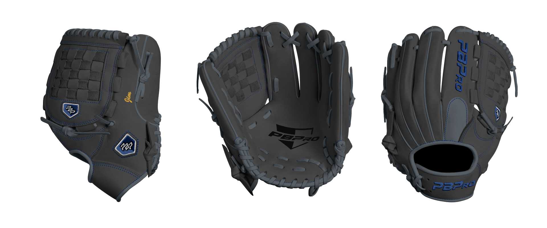 Category: PBPro Custom Product: Baseball Series: Travel Pro Series | USD 149.00 Glove Type: Fielders Size: 12" Finger Pad: With Finger Pad Web: Basket Web Palm: Palm (Color: Black) Back Shell Main: Back Shell Main (Color: Black) Back Shell Accent: Back Shell Accent (Color: Black) Web: Web (Color: Black) Finger Pad: Finger Pad (Color: Steel Gray) Welting: Welting (Color: Steel Gray) Binding: Binding (Color: Steel Gray) Lace: Lace (Color: Steel Gray) Logo and Label: Logo and Label (Color: Royal) Stitch: Stitch (Color: Royal) Embroidery: Embroidery (Color: Royal) Hand Throw: Right Hand Thrower Lace Length: Normal Name: Jim (Font Style: Brush Script MT, Font Color: G.Yellow, Patch Color: N/A) Flag (Ring Finger): United States Remarks: N/A
