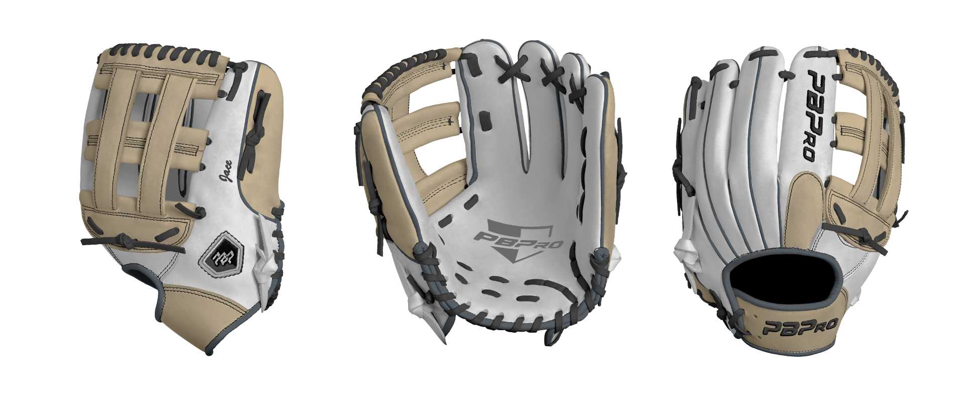 Category: PBPro Custom Product: Baseball Series: Travel Pro Series | USD 149.00 Glove Type: Fielders Size: 11.5" Finger Pad: With Finger Pad Web: Pro H Web Palm: Palm (Color: White) Back Shell Main: Back Shell Main (Color: White) Back Shell Accent: Back Shell Accent (Color: Cream) Web: Web (Color: Cream) Finger Pad: Finger Pad (Color: Cream) Welting: Welting (Color: Steel Gray) Binding: Binding (Color: Steel Gray) Lace: Lace (Color: Black) Logo and Label: Logo and Label (Color: Black) Stitch: Stitch (Color: Black) Embroidery: Embroidery (Color: Black) Hand Throw: Right Hand Thrower Lace Length: Long (will not show in customizer) Name: Jace (Font Style: Brush Script MT, Font Color: Black, Patch Color: N/A) Flag (Ring Finger): N/A Remarks: N/A