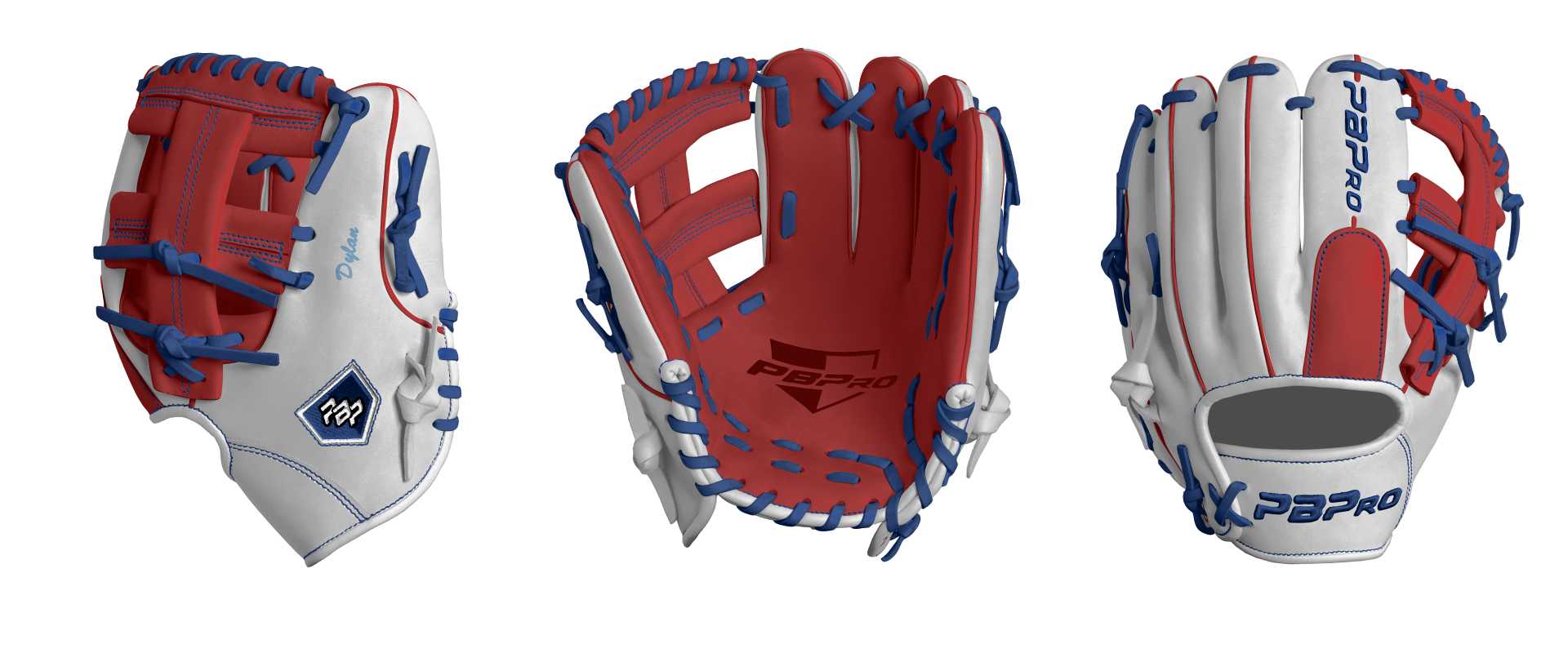 Category: PBPro Custom Product: Baseball Series: Travel Pro Series | USD 149.00 Glove Type: Fielders Size: 11" Finger Pad: With Finger Pad Web: New Cross Web Palm: Palm (Color: Red) Back Shell Main: Back Shell Main (Color: White) Back Shell Accent: Back Shell Accent (Color: White) Web: Web (Color: Red) Finger Pad: Finger Pad (Color: Red) Welting: Welting (Color: Red) Binding: Binding (Color: White) Lace: Lace (Color: Royal) Logo and Label: Logo and Label (Color: Royal) Stitch: Stitch (Color: Royal) Embroidery: Embroidery (Color: Royal) Hand Throw: Right Hand Thrower Lace Length: Normal Name: Dylan (Font Style: Brush Script MT, Font Color: Columbia Blue, Patch Color: N/A) Flag (Ring Finger): United States Remarks: N/A
