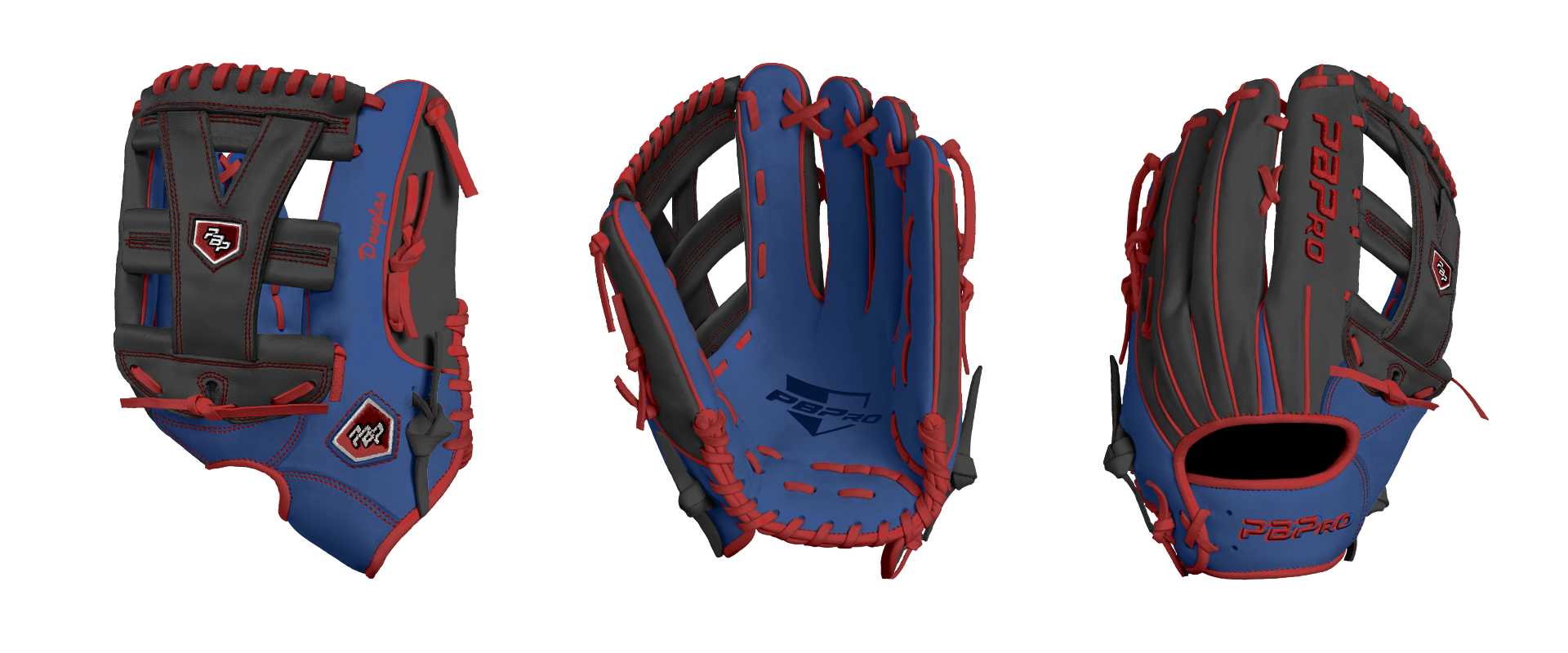 Category: PBPro Custom Product: Baseball Series: Travel Pro Series | USD 149.00 Glove Type: Fielders Size: 12.75" Finger Pad: Without Finger Pad Web: Y Web Palm: Palm (Color: Royal) Back Shell Main: Back Shell Main (Color: Black) Back Shell Accent: Back Shell Accent (Color: Royal) Web: Web (Color: Black) Welting: Welting (Color: Red) Binding: Binding (Color: Red) Lace: Lace (Color: Red) Logo and Label: Logo and Label (Color: Red) Stitch: Stitch (Color: Red) Embroidery: Embroidery (Color: Red) Hand Throw: Right Hand Thrower Lace Length: Normal Name: Douglas (Font Style: Brush Script MT, Font Color: Red, Patch Color: N/A) Flag (Ring Finger): North Carolina Remarks: N/A