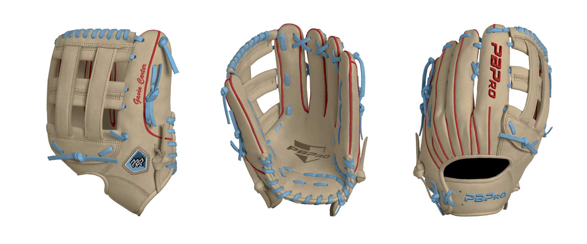 Category: PBPro Custom Product: Baseball Series: Travel Pro Series | USD 149.00 Glove Type: Fielders Size: 12.75" Finger Pad: Without Finger Pad Web: Pro H Web Palm: Palm (Color: Cream) Back Shell Main: Back Shell Main (Color: Cream) Back Shell Accent: Back Shell Accent (Color: Cream) Web: Web (Color: Cream) Welting: Welting (Color: Red) Binding: Binding (Color: Cream) Lace: Lace (Color: Columbia Blue) Logo and Label: Logo and Label (Color: Columbia Blue) Stitch: Stitch (Color: Cream) Embroidery: Embroidery (Color: Red) Hand Throw: Left Hand Thrower Lace Length: Normal Name: Gavin Carter (Font Style: Brush Script MT, Font Color: Red, Patch Color: N/A) Flag (Ring Finger): Ireland Remarks: N/A