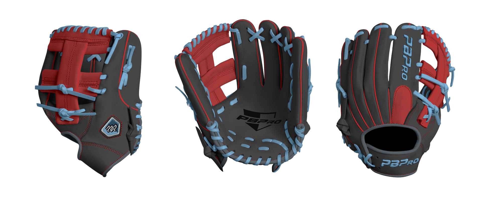 Category: PBPro Custom Product: Baseball Series: Travel Pro Series | USD 149.00 Glove Type: Fielders Size: 11.25" Finger Pad: With Finger Pad Web: New Cross Web Palm: Palm (Color: Black) Back Shell Main: Back Shell Main (Color: Black) Back Shell Accent: Back Shell Accent (Color: Black) Web: Web (Color: Red) Finger Pad: Finger Pad (Color: Red) Welting: Welting (Color: Red) Binding: Binding (Color: Steel Gray) Lace: Lace (Color: Columbia Blue) Logo and Label: Logo and Label (Color: Columbia Blue) Stitch: Stitch (Color: Red) Embroidery: Embroidery (Color: Columbia Blue) Hand Throw: Right Hand Thrower Lace Length: Normal Flag (Ring Finger): N/A Remarks: N/A