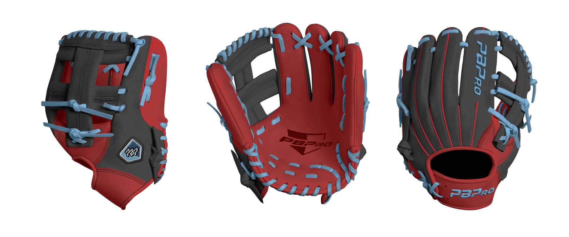 Category: PBPro Custom Product: Baseball Series: Travel Pro Series | USD 149.00 Glove Type: Fielders Size: 11.75" Finger Pad: Without Finger Pad Web: New Cross Web Palm: Palm (Color: Red) Back Shell Main: Back Shell Main (Color: Black) Back Shell Accent: Back Shell Accent (Color: Red) Web: Web (Color: Black) Welting: Welting (Color: Red) Binding: Binding (Color: Red) Lace: Lace (Color: Columbia Blue) Logo and Label: Logo and Label (Color: Columbia Blue) Stitch: Stitch (Color: Black) Embroidery: Embroidery (Color: Columbia Blue) Hand Throw: Right Hand Thrower Lace Length: Normal Flag (Ring Finger): N/A Remarks: N/A
