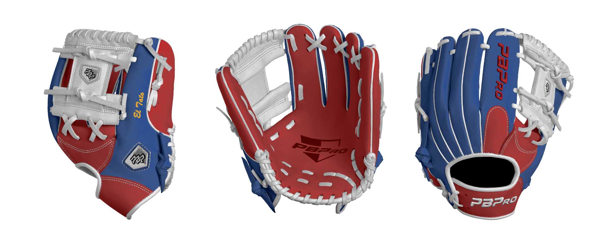 Category: PBPro Custom Product: Baseball Series: Travel Pro Series | USD 149.00 Glove Type: Fielders Size: 11.5" Finger Pad: With Finger Pad Web: Pro I Web Palm: Palm (Color: Red) Back Shell Main: Back Shell Main (Color: Royal) Back Shell Accent: Back Shell Accent (Color: Red) Web: Web (Color: White) Finger Pad: Finger Pad (Color: Red) Welting: Welting (Color: White) Binding: Binding (Color: White) Lace: Lace (Color: White) Logo and Label: Logo and Label (Color: White) Stitch: Stitch (Color: White) Embroidery: Embroidery (Color: Red) Hand Throw: Right Hand Thrower Lace Length: Normal Name: El Tato (Font Style: Brush Script MT, Font Color: G.Yellow, Patch Color: N/A) Flag (Ring Finger): Dominican Republic Remarks: Please be careful thanks