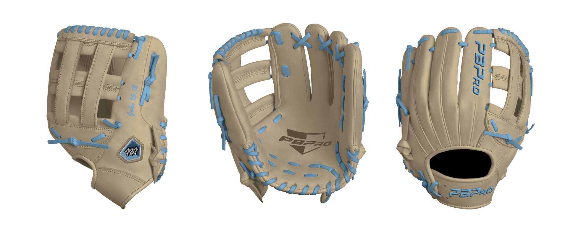 Category: PBPro Custom Product: Baseball Series: Travel Pro Series | USD 149.00 Glove Type: Fielders Size: 11.5" Finger Pad: Without Finger Pad Web: Pro H Web Palm: Palm (Color: Cream) Back Shell Main: Back Shell Main (Color: Cream) Back Shell Accent: Back Shell Accent (Color: Cream) Web: Web (Color: Cream) Welting: Welting (Color: Cream) Binding: Binding (Color: Cream) Lace: Lace (Color: Columbia Blue) Logo and Label: Logo and Label (Color: Columbia Blue) Stitch: Stitch (Color: Cream) Embroidery: Embroidery (Color: Columbia Blue) Hand Throw: Right Hand Thrower Lace Length: Long (will not show in customizer) Name: John 15:18 (Font Style: Brush Script MT, Font Color: Columbia Blue, Patch Color: N/A) Flag (Ring Finger): N/A Remarks: N/A
