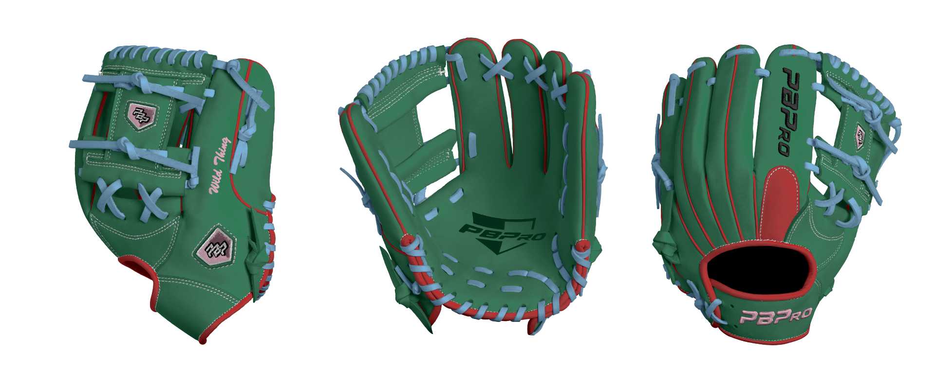 Category: PBPro Custom Product: Baseball Series: Travel Pro Series | USD 149.00 Glove Type: Fielders Size: 11.5" Finger Pad: With Finger Pad Web: Pro I Web Palm: Palm (Color: Green) Back Shell Main: Back Shell Main (Color: Green) Back Shell Accent: Back Shell Accent (Color: Green) Web: Web (Color: Green) Finger Pad: Finger Pad (Color: Red) Welting: Welting (Color: Red) Binding: Binding (Color: Red) Lace: Lace (Color: Columbia Blue) Logo and Label: Logo and Label (Color: C.Pink) Stitch: Stitch (Color: White) Embroidery: Embroidery (Color: Black) Hand Throw: Right Hand Thrower Lace Length: Long (will not show in customizer) Name: Wild Thing (Font Style: Brush Script MT, Font Color: C.Pink, Patch Color: N/A) Flag (Ring Finger): N/A Remarks: N/A